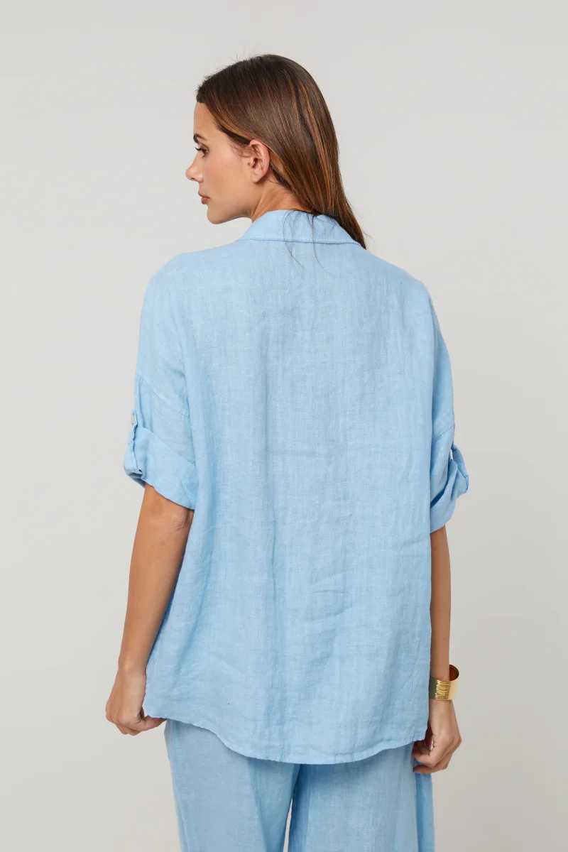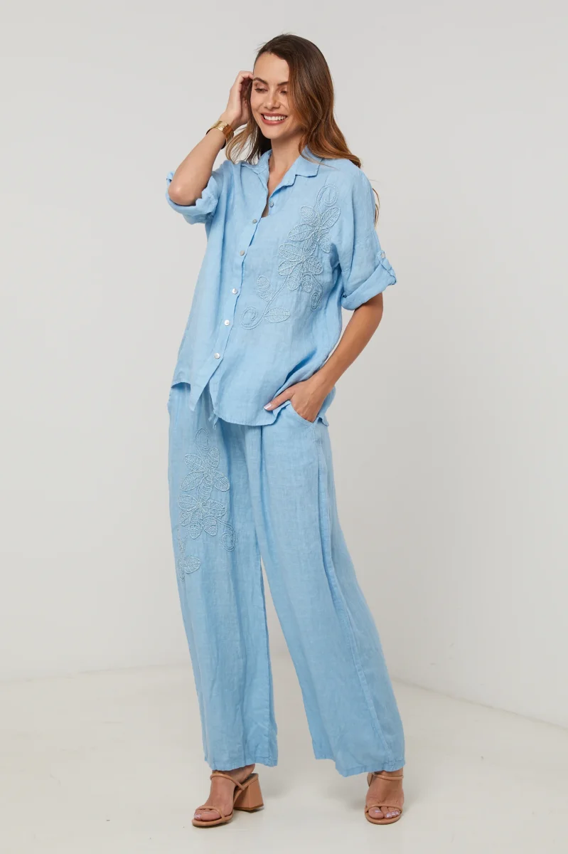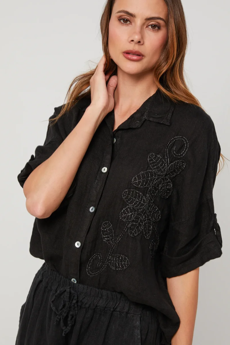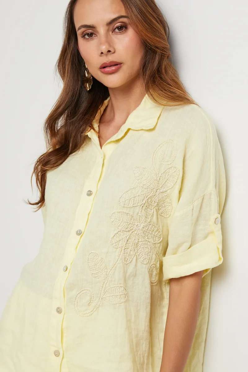 Chemise en lin, manches 3/4 avec broderie fleur Composition : 100% LINOrigine : ItalieEntretien : Lavage en machine, en dessous de 30 ° C