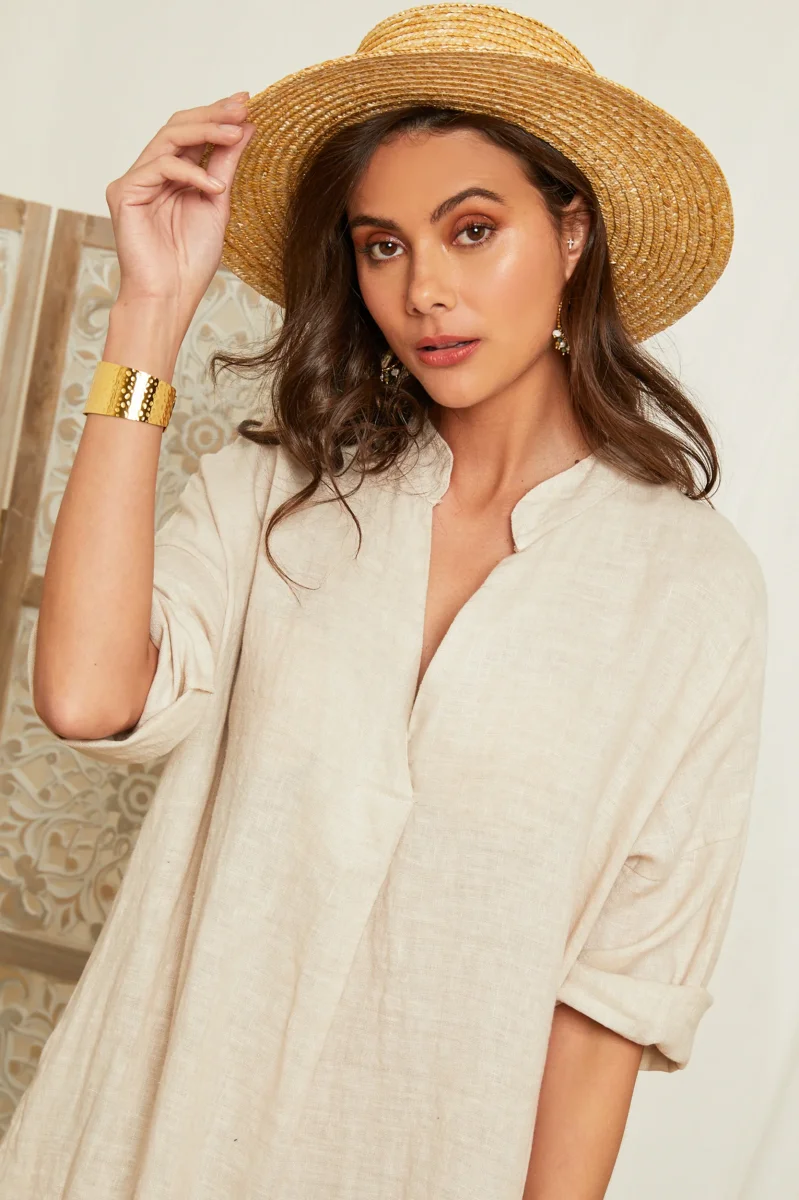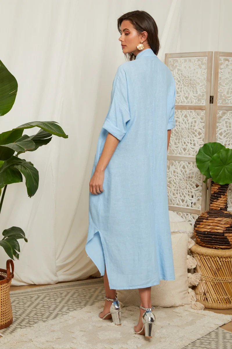 Cette robe est confectionnée en lin doux et respirant, offrant un confort tout au long de la journée.