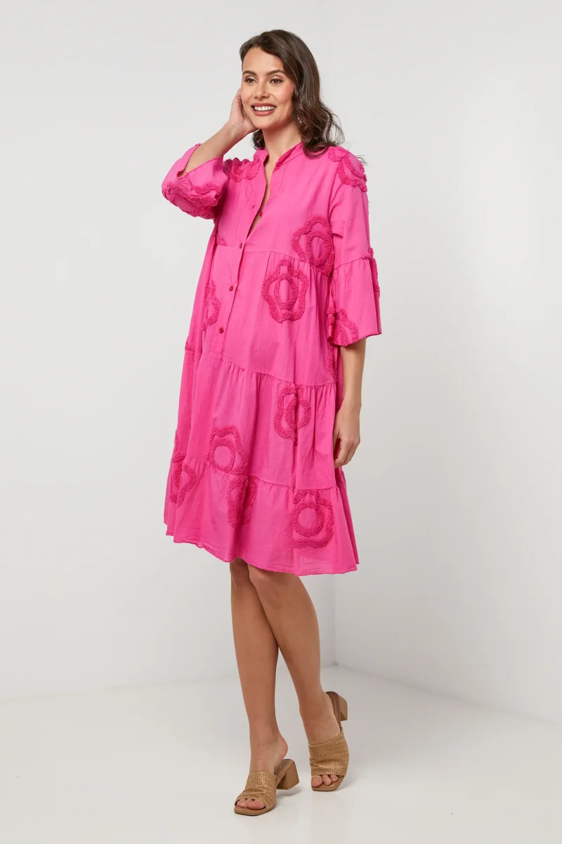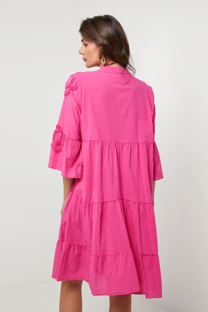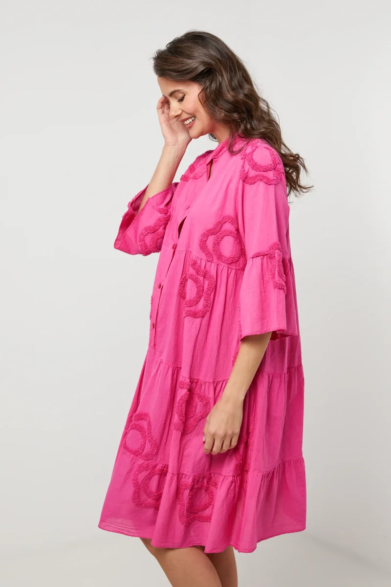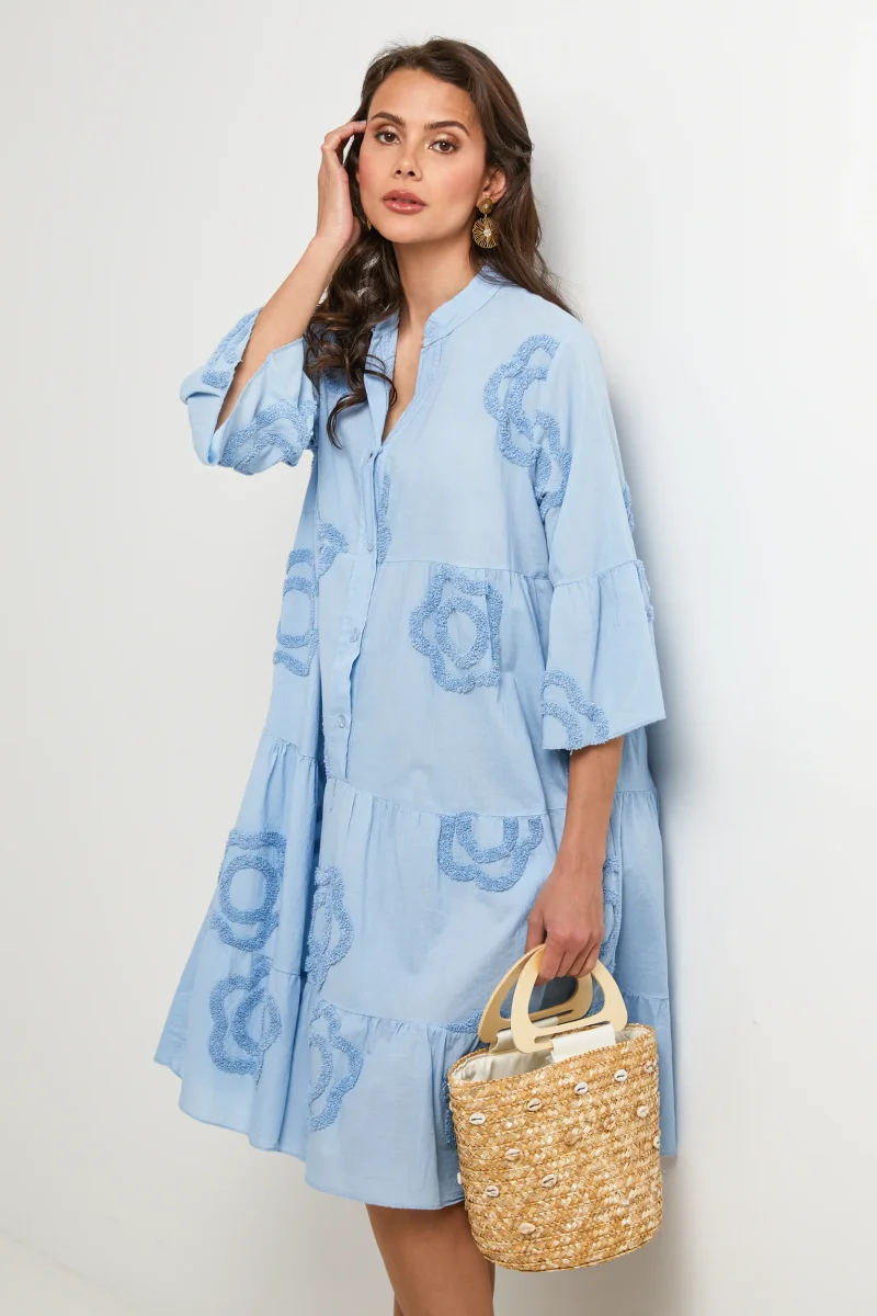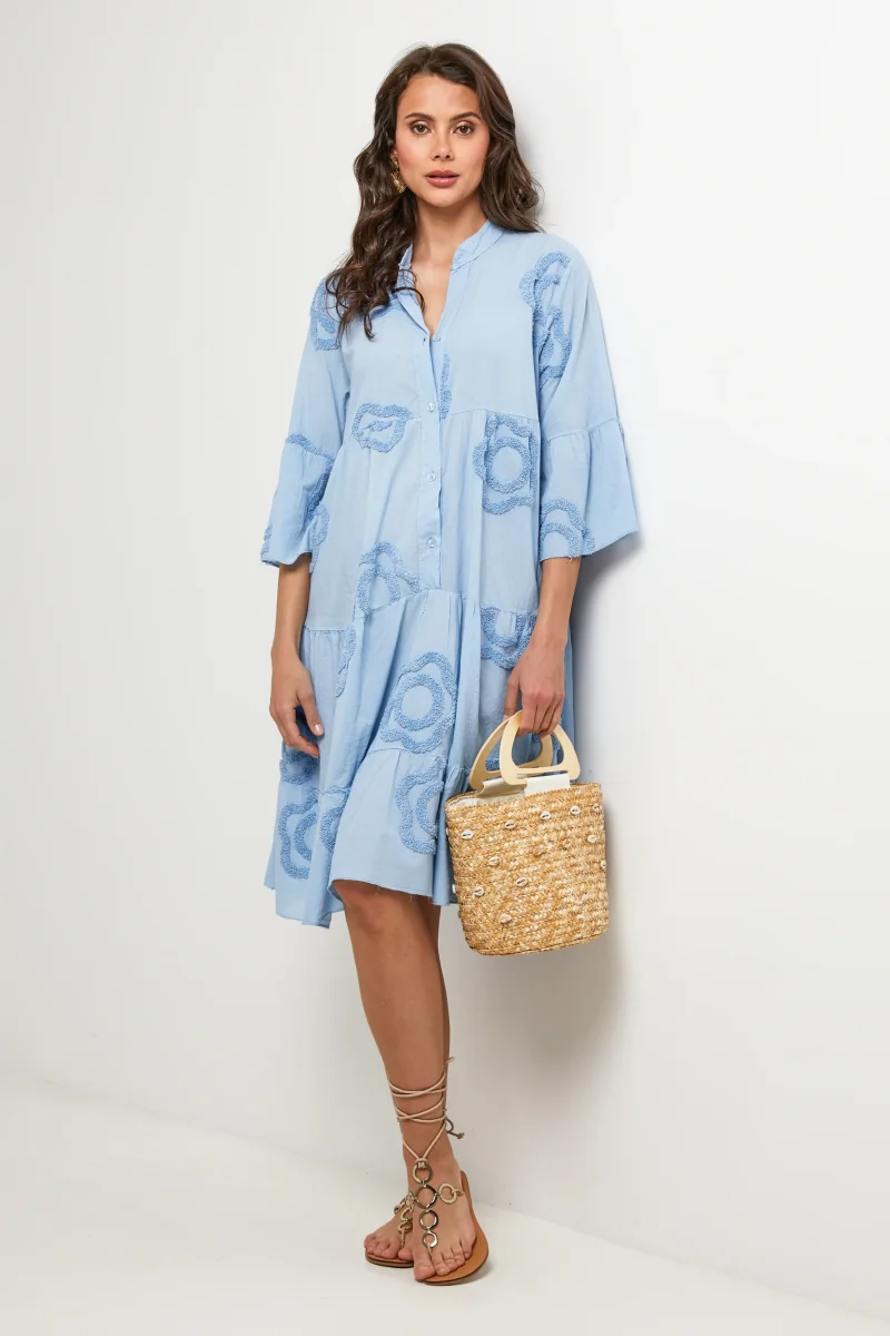 Robe chemise courte et évasée avec manches 3/4 à motifs fleurisLavage en machine, en dessous de 30 ° C100% LIN