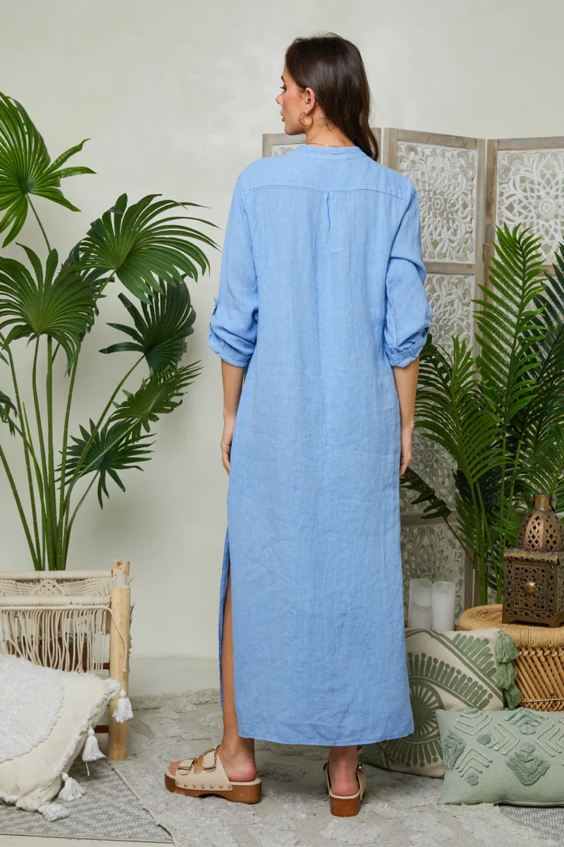 Robe chemise longue, manches longues avec patte de boutonnage et fendue sur les côtés100% LINLavage en machine, en dessous de 30 ° C
