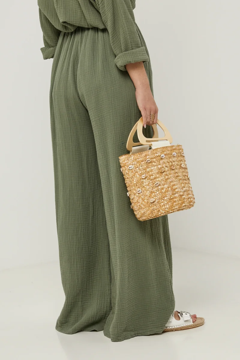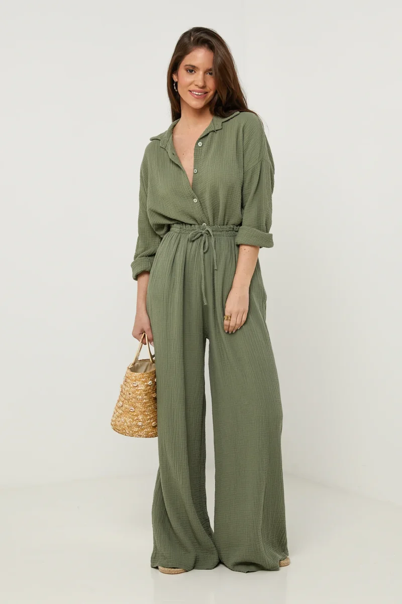 Pantalon large , avec poches sur les côtés , ajustable à la taille Composition : 100% LINOrigine : ITALIEEntretien : Lavage en machine, en dessous de 30 ° C