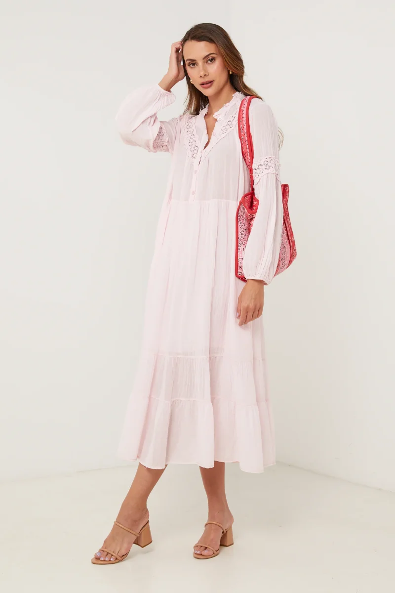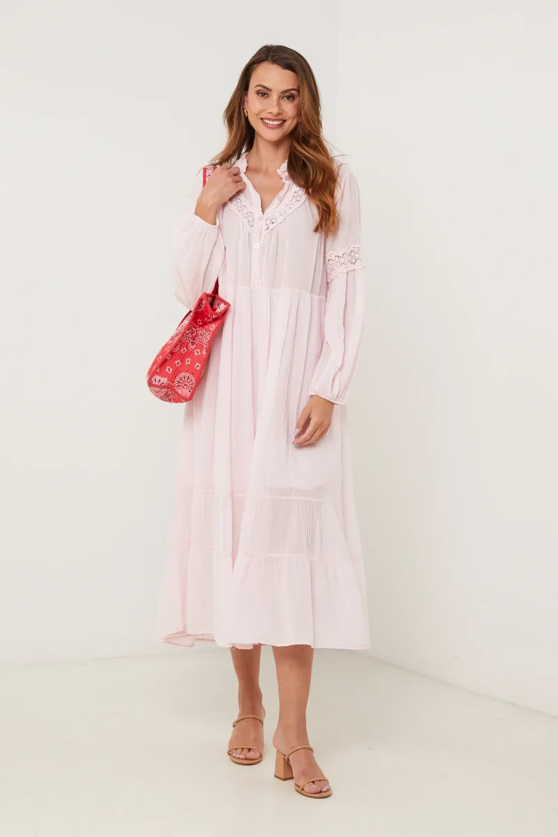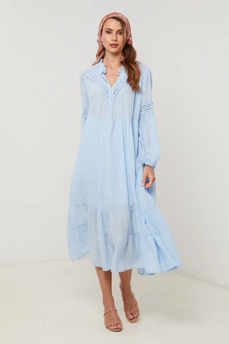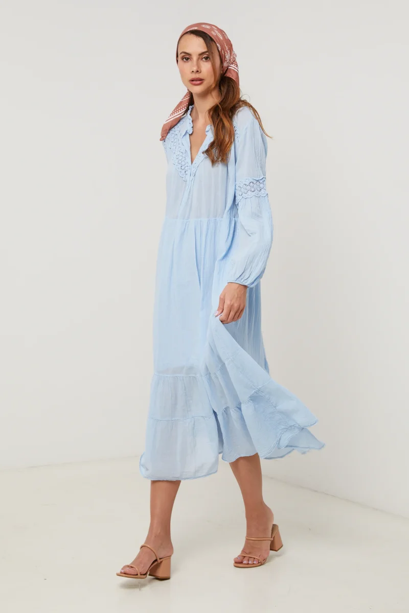 Robe longue en coton, manches longues