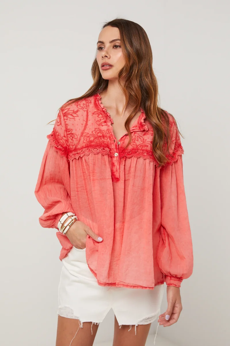 Top en coton, manches longues Composition : 100% COTONOrigine : ItalieEntretien : Lavage en machine, en dessous de 30 ° C