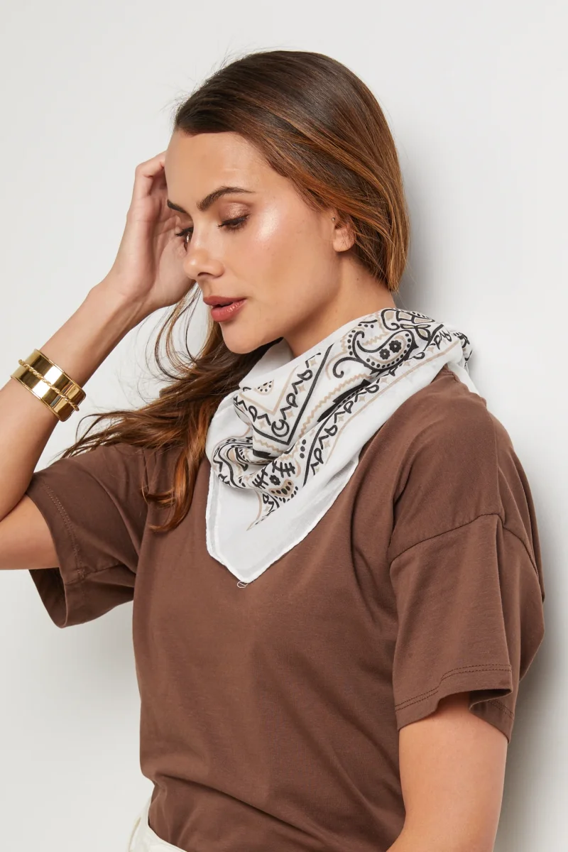 Foulard Composition : 50% COTON 50% VISCOSEOrigine : PRCEntretien : Lavage en machine, en dessous de 30 ° C