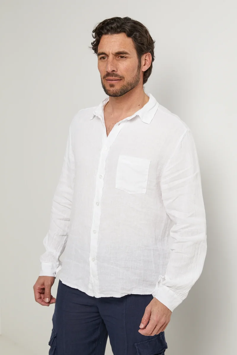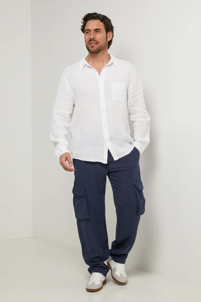 Chemise à manches longues et poche plaquée à niveau de la poitrine100% LINLavage en machine, en dessous de 30°