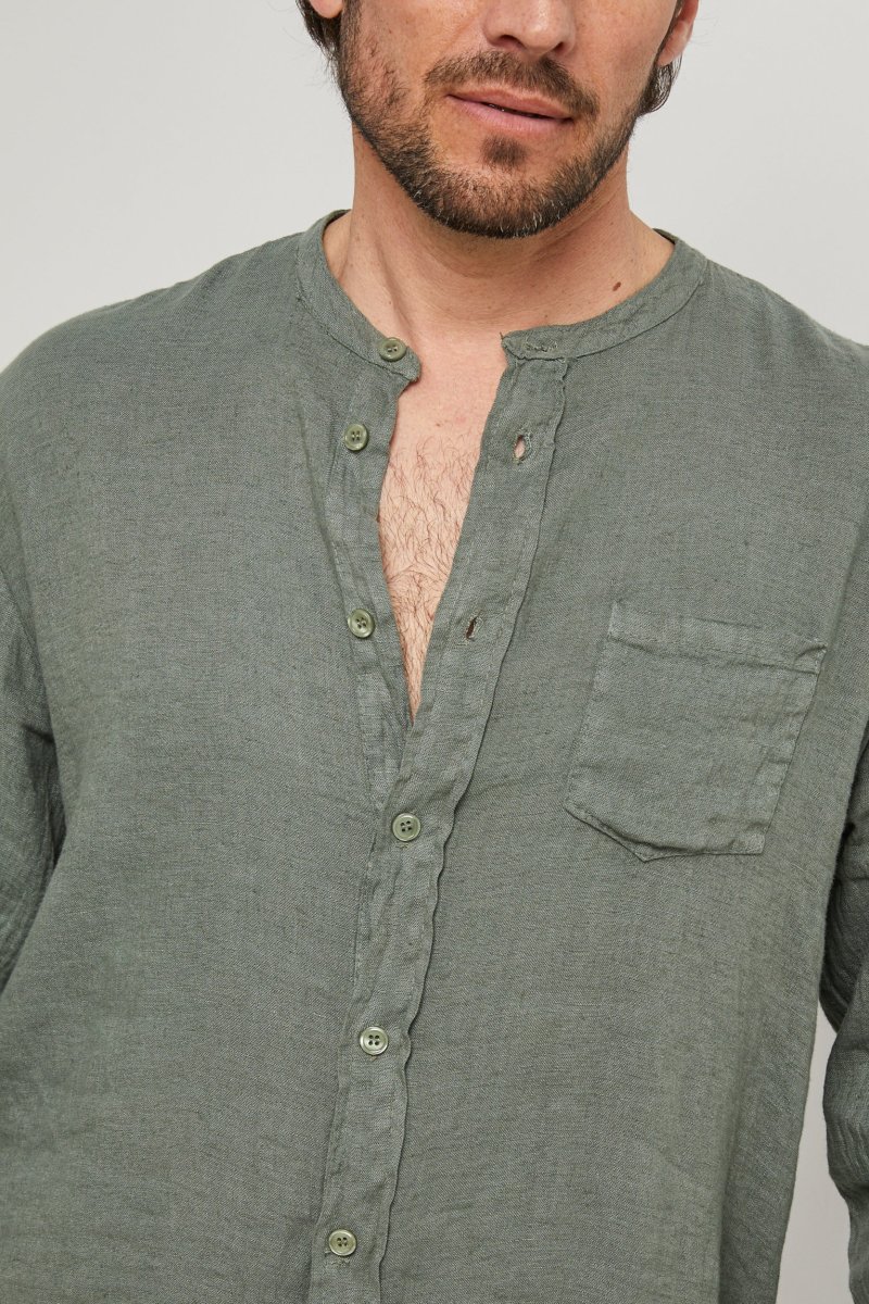 Chemise col mao, manches longues, poche plaquée sur la poitrine100% LINLavage en machine, en dessous de 30 ° C