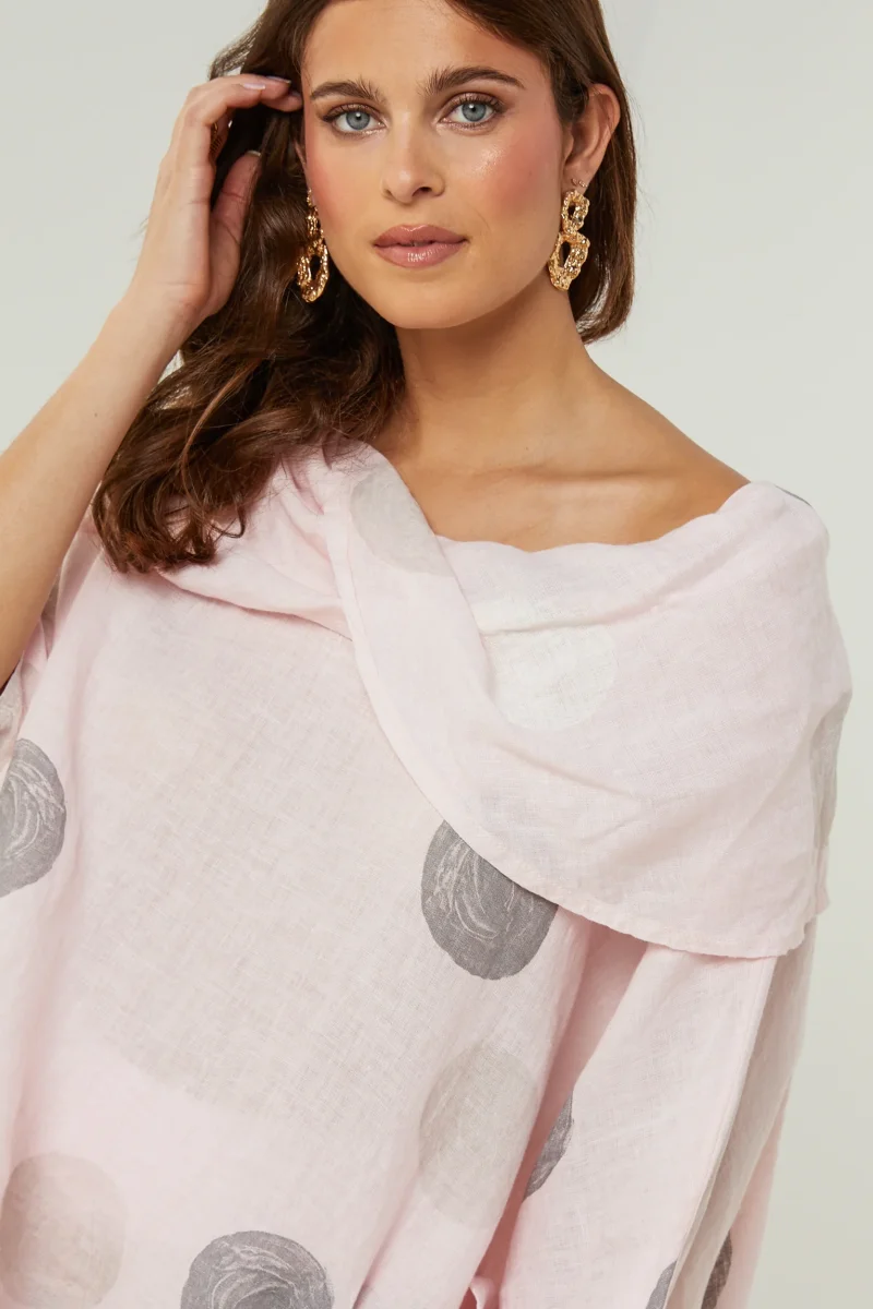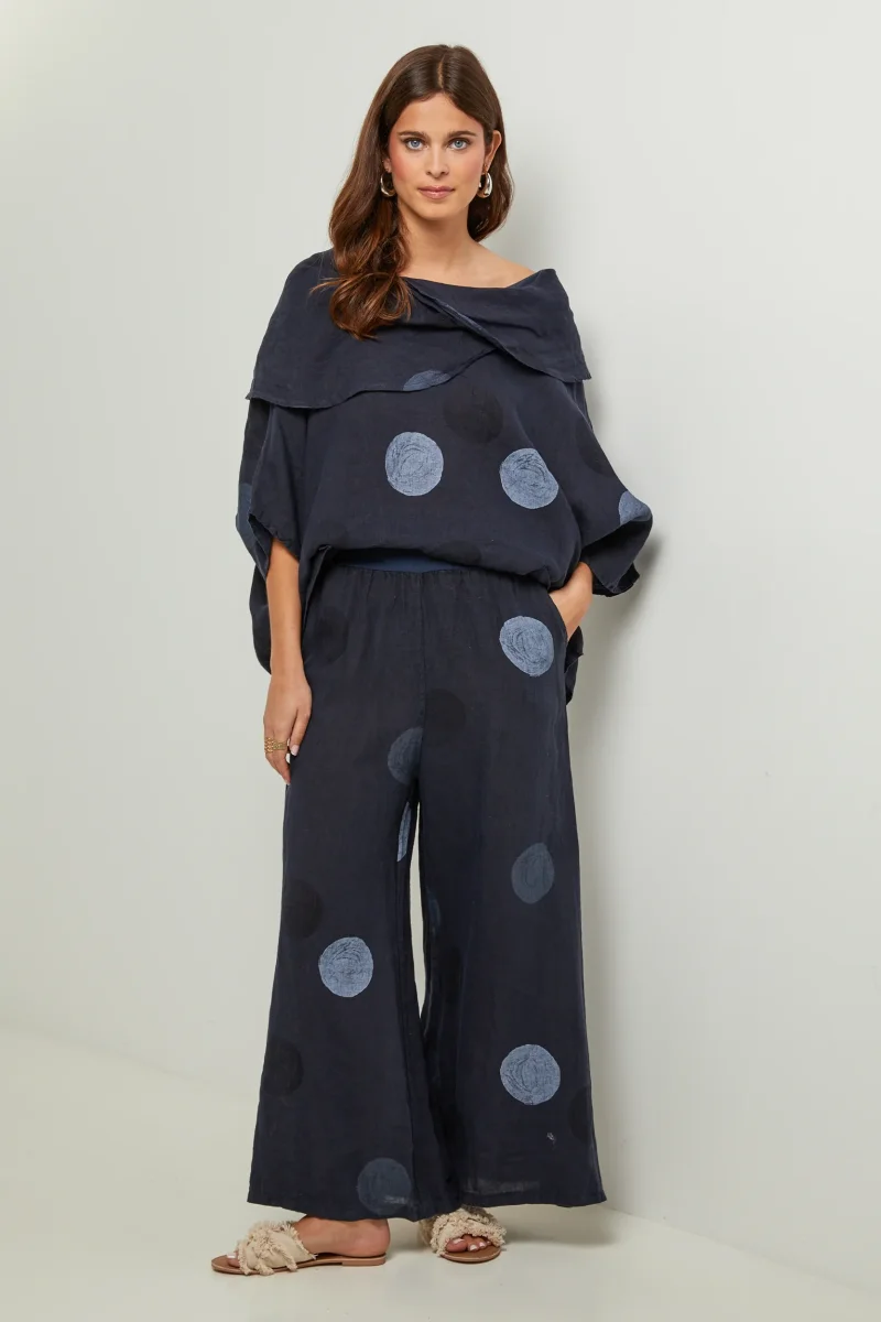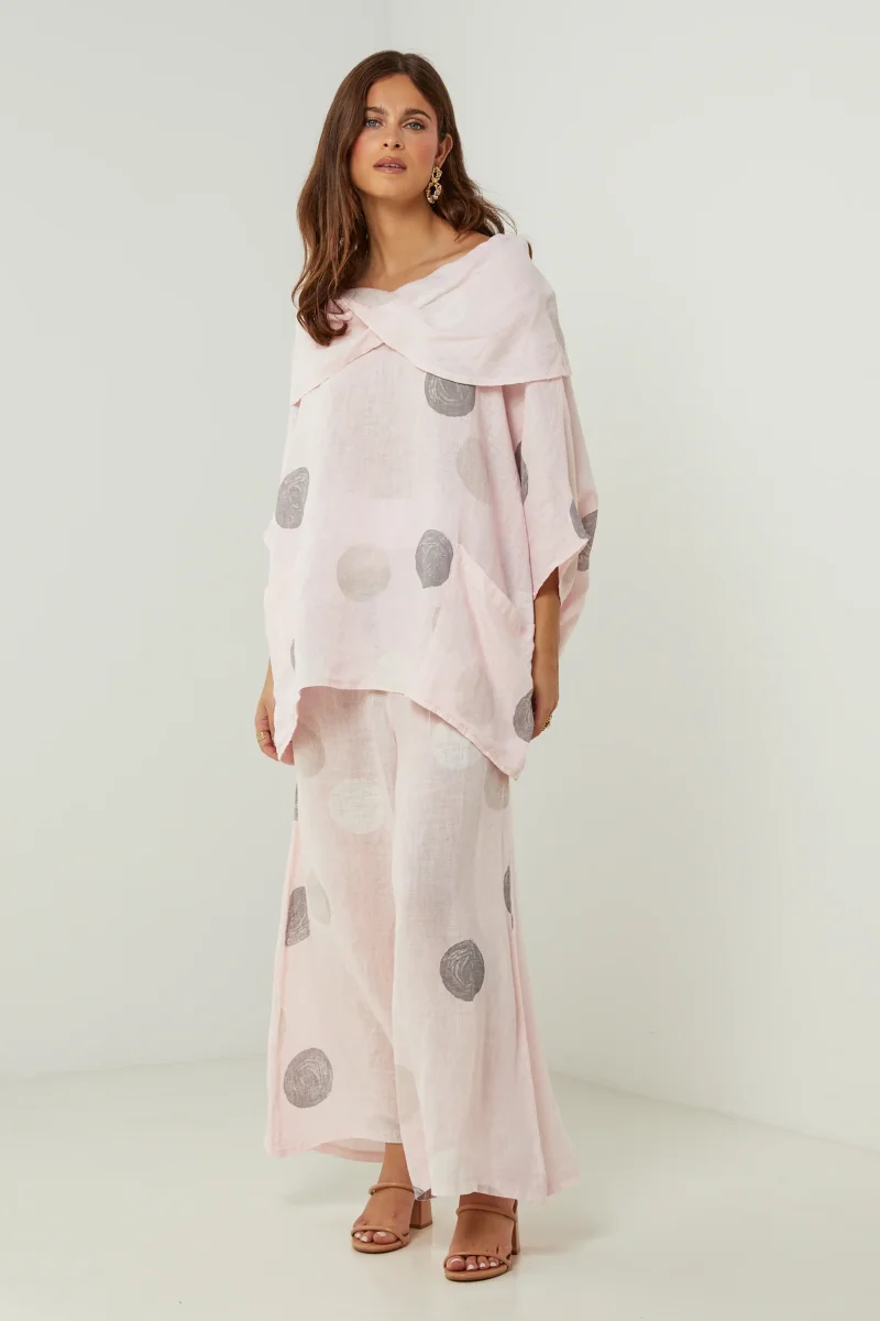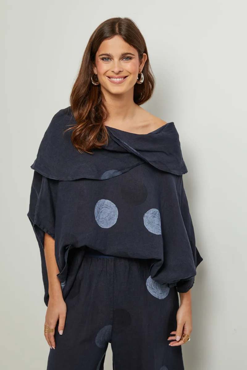 Tunique large à pois à encolure originale, avec poches plaquées sur le devant100% LINLavage en machine, en dessous de 30 ° C