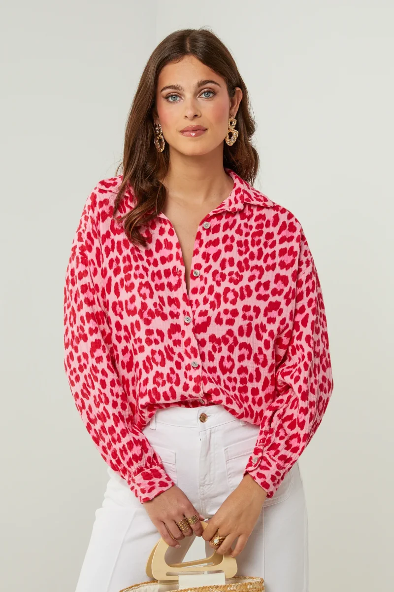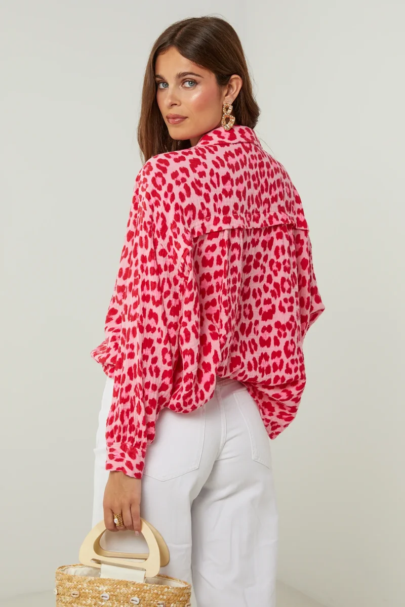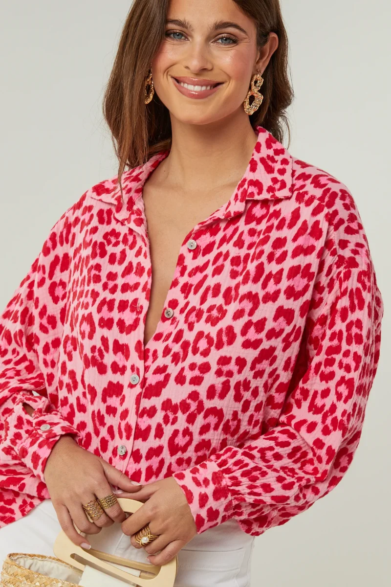 Chemise en gaze de coton imprimée léopard, manches longuesLavage en machine, en dessous de 30 ° C100% Coton