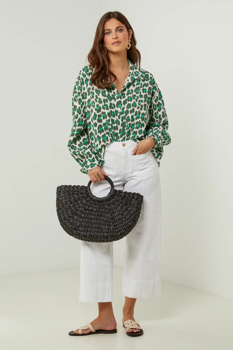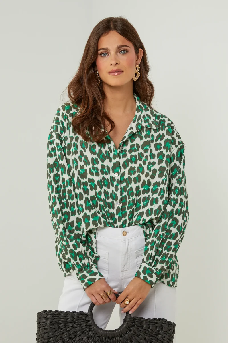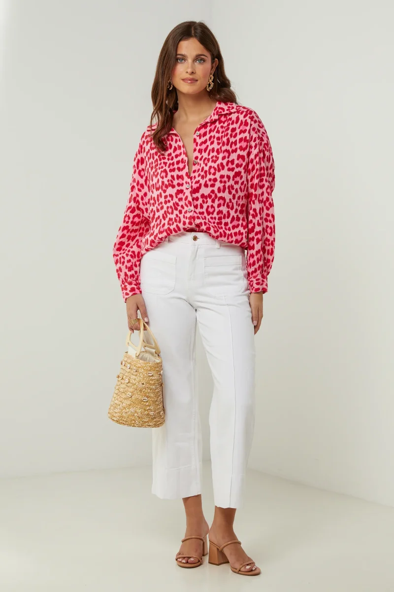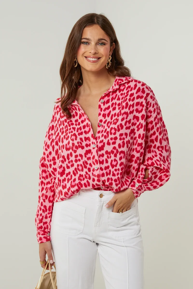 Chemise en gaze de coton imprimée léopard, manches longuesLavage en machine, en dessous de 30 ° C100% Coton