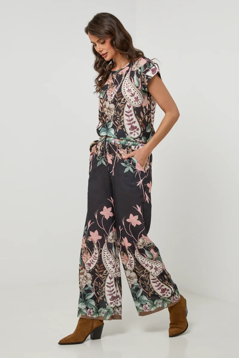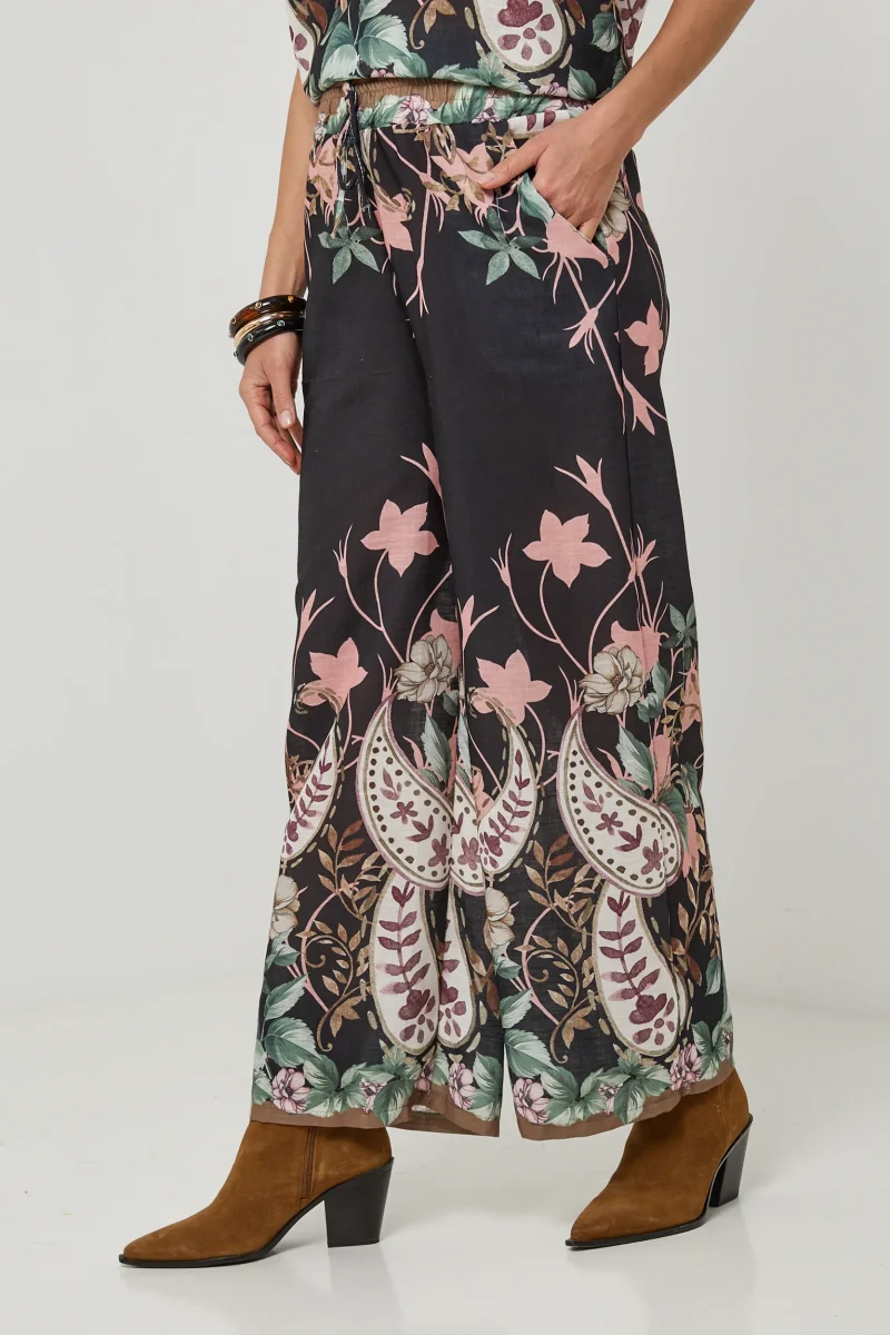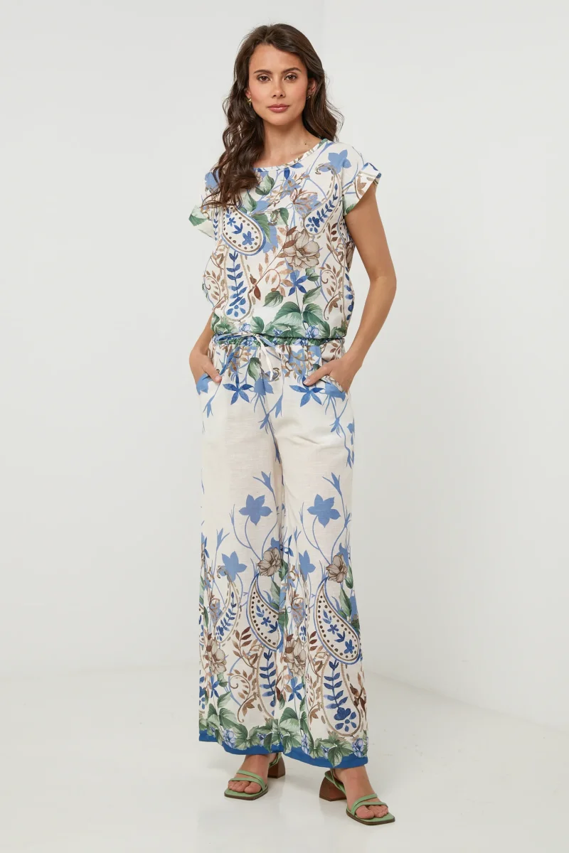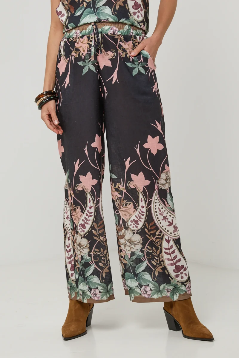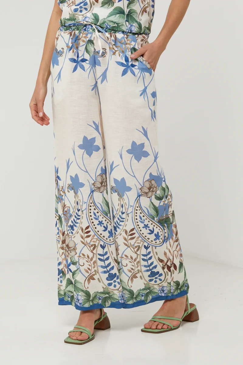 Pantalon large imprimé avec deux poches latérales50% Lin 50% ViscoseLavage en machine, en dessous de 30 ° C * Top assorti disponible sur notre e-shop*