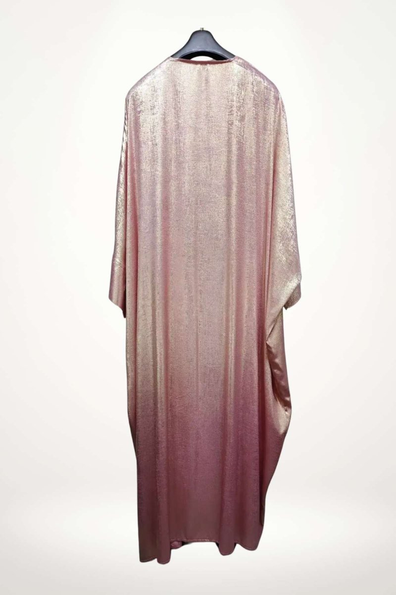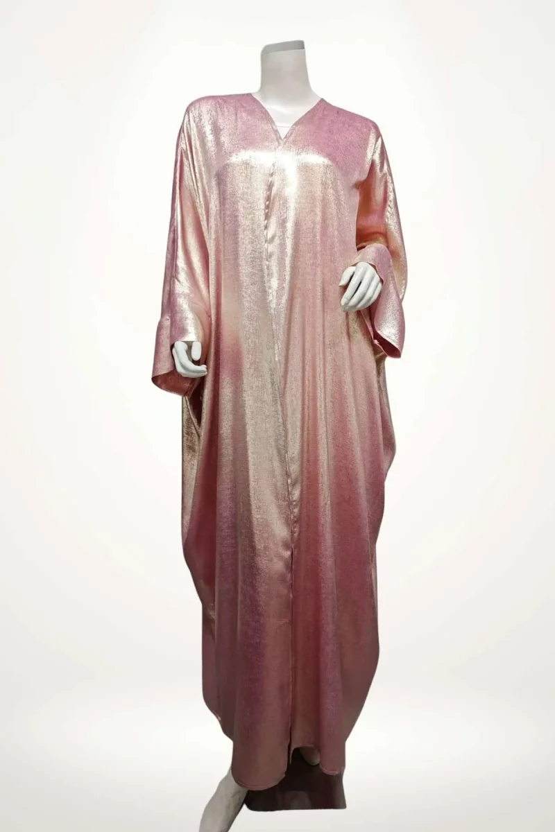 En bref : Une abaya kimono luxe qui déploie son éclat subtil dans un rose poudré lumineux. Sa coupe ample et fluide épouse la silhouette avec légèreté, tandis que ses manches larges et longues renforcent l’allure élégante et décontractée. Un modèle sans ceinture, qui se porte ouvert ou fermé, pour une féminité douce et contemporaine.