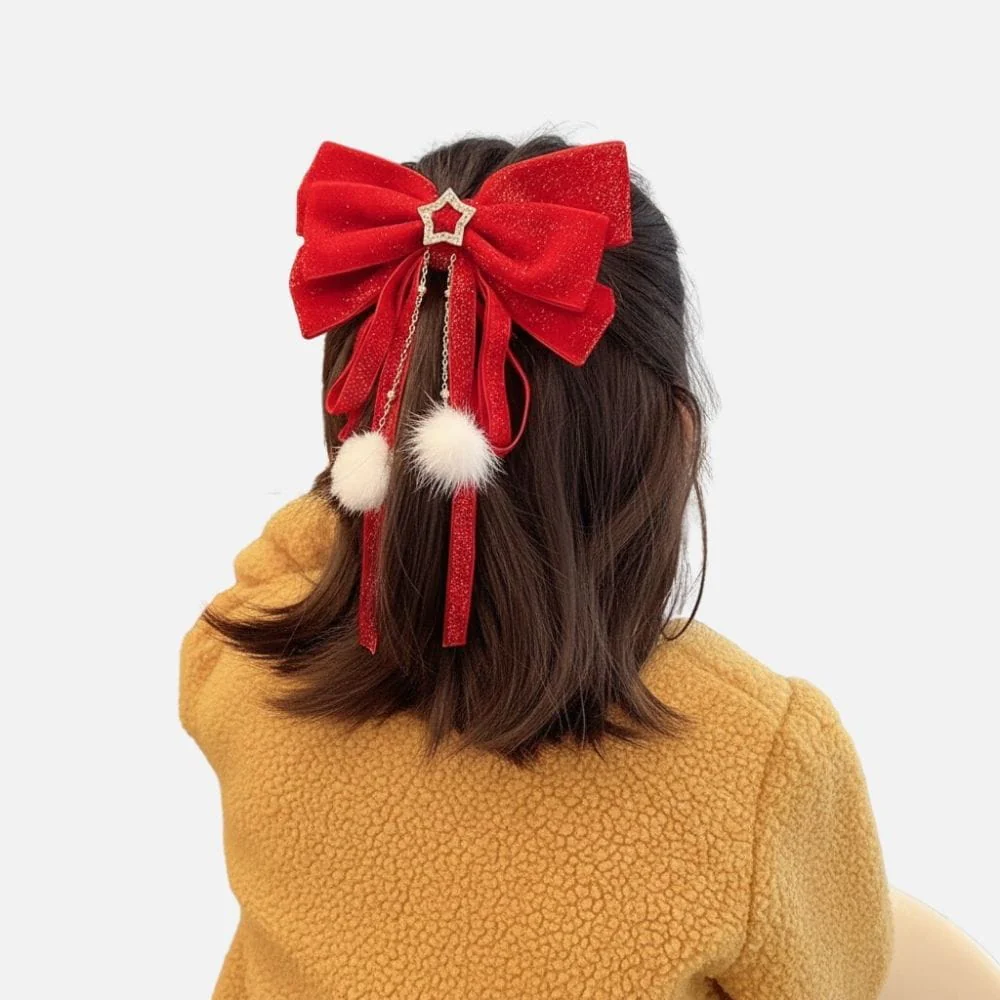 - Émotion : Ce nœud rouge vif, orné de chaînes fines et de pompons blancs duveteux, évoque la douceur et la joie des fêtes, tout en apportant un charme enfantin et raffiné typique des accessoires cheveux fillette traditionnels.