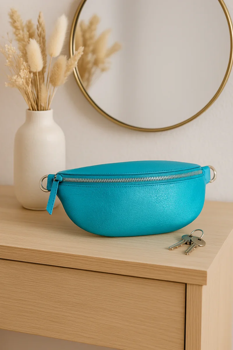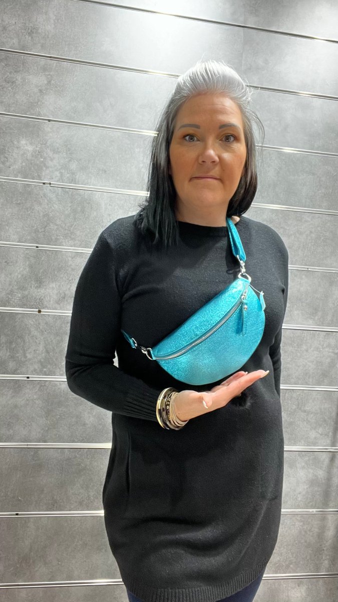 Cette pièce audacieuse et moderne fusionne le style pratique de la banane avec l’éclat captivant du cuir irisé, créant ainsi un accessoire unique qui ne manquera pas de faire tourner les têtes.