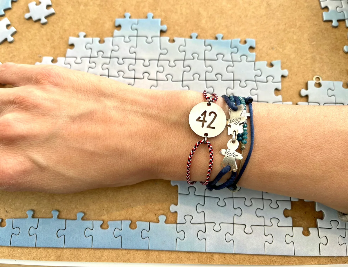 Cordon réglable et sa médaillon 42 en acier inoxydable. Afficher notre région au poignet en portant un bijou 42.
