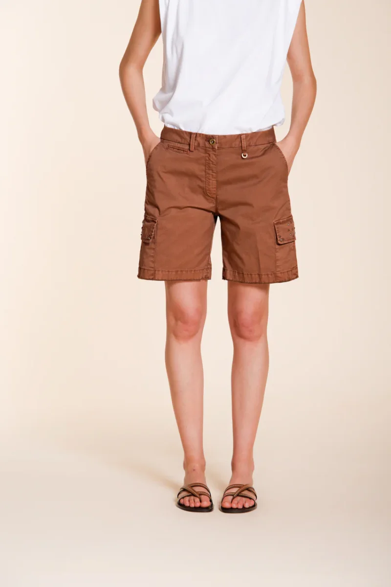 Dallas bermuda cargo donna in cotone fiammato relaxed fit