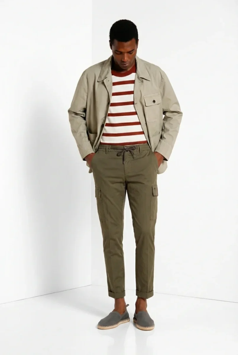 Chile Jogger pantalone cargo uomo in tela paracadute lyocell e cotone extra slim fit