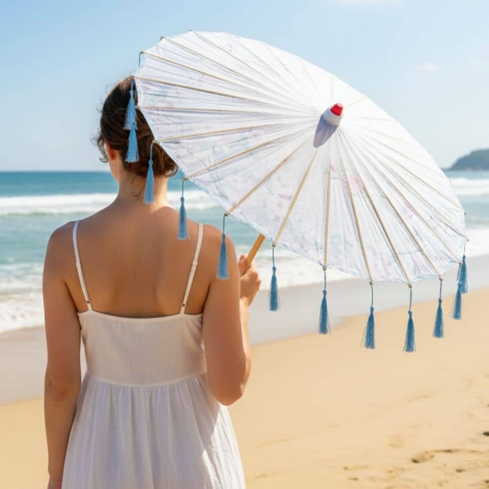 Ombrelle Anti Uv Blanche | Finition Franges