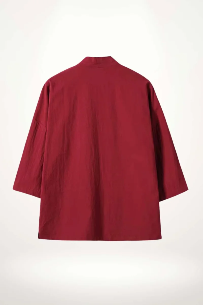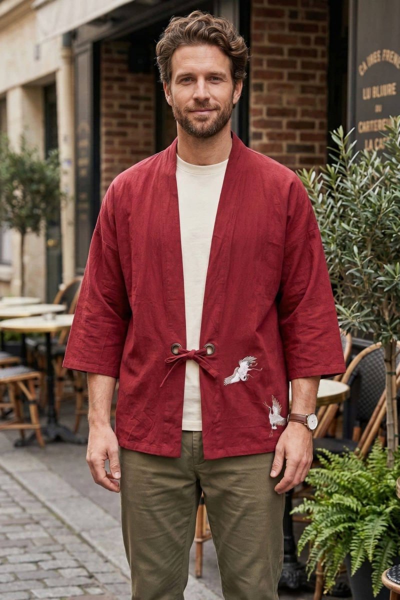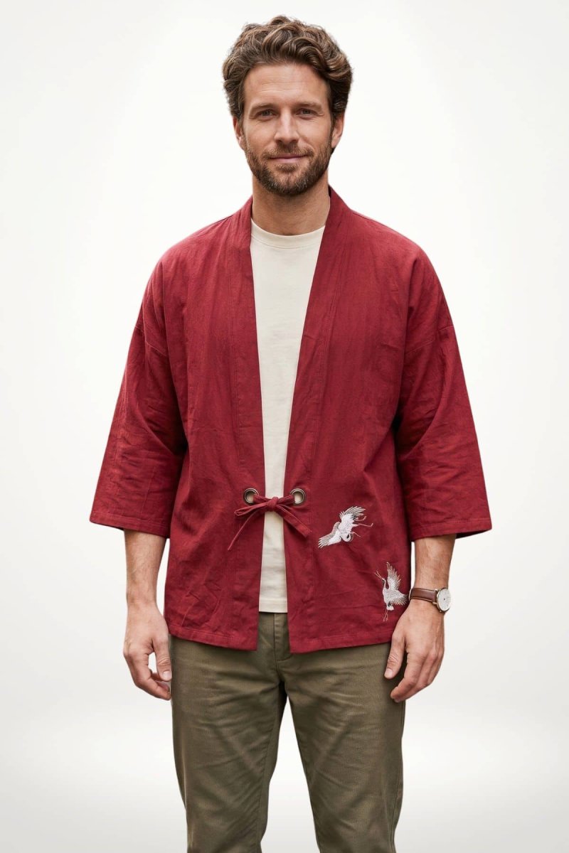 Une chemise style kimono homme rouge brodée, entre tradition et modernité