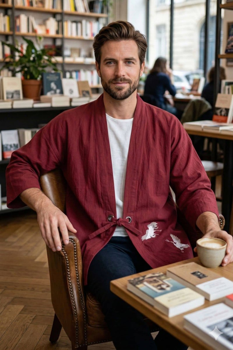 - Émotion : Une présence affirmée, entre prestance et décontraction, qui invite à porter la chemise style kimono homme avec apporte et style.