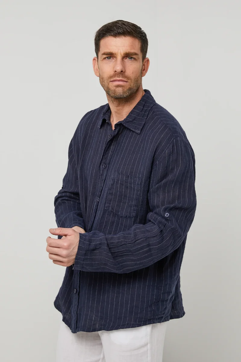 Chemise à réyure, manche longue avec une poche sur la poitrine Composition : 100% LINOrigine : ItalieEntretien : Lavage en machine, en dessous de 30 ° C