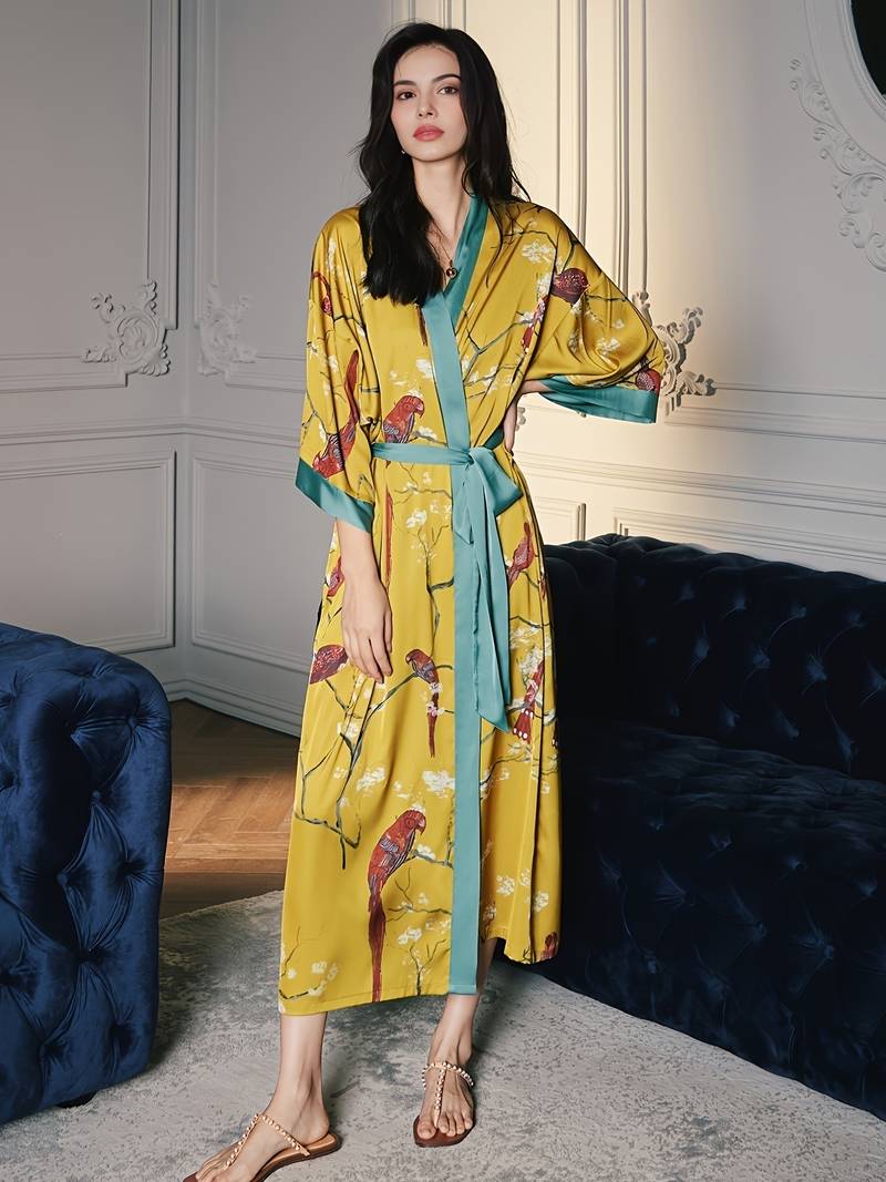 Enveloppez-vous dans l’élégance et la douceur avec ce long peignoir kimono en satin, conçu pour chaque femme désireuse de prolonger le plaisir du bain. Ce peignoir offre un confort luxueux et un style raffiné pour vos moments de détente.