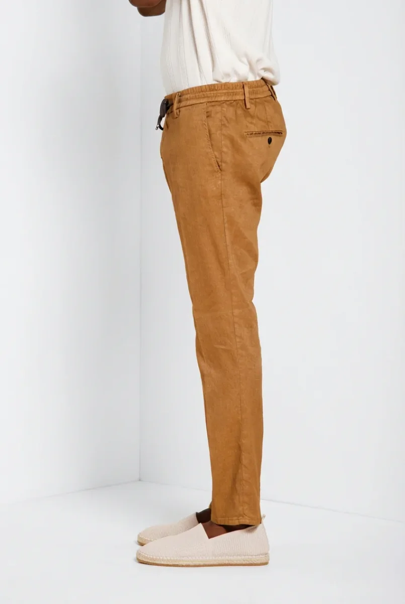 Milano Jogger pantalone chino uomo in twill di lino e cotone extra slim fit