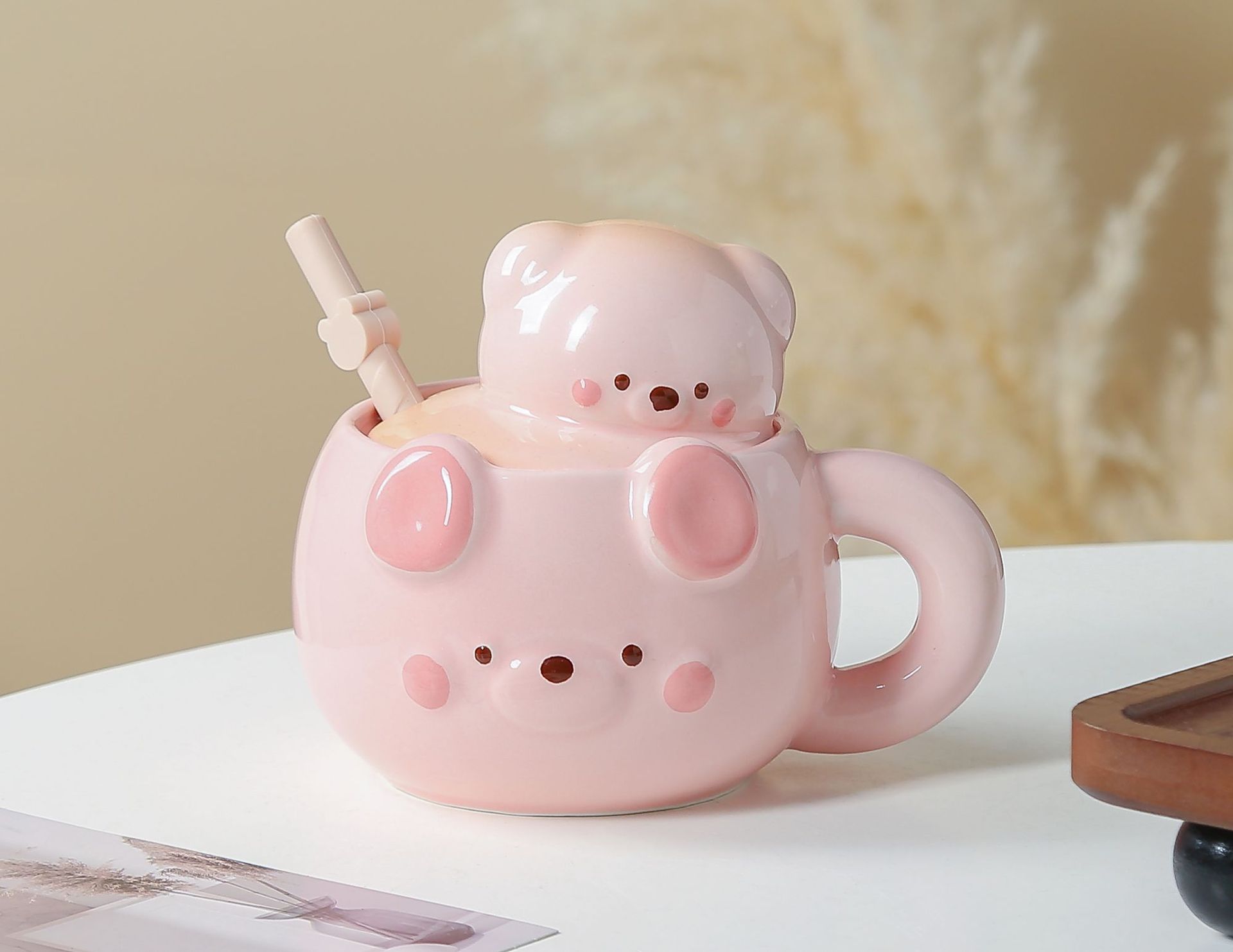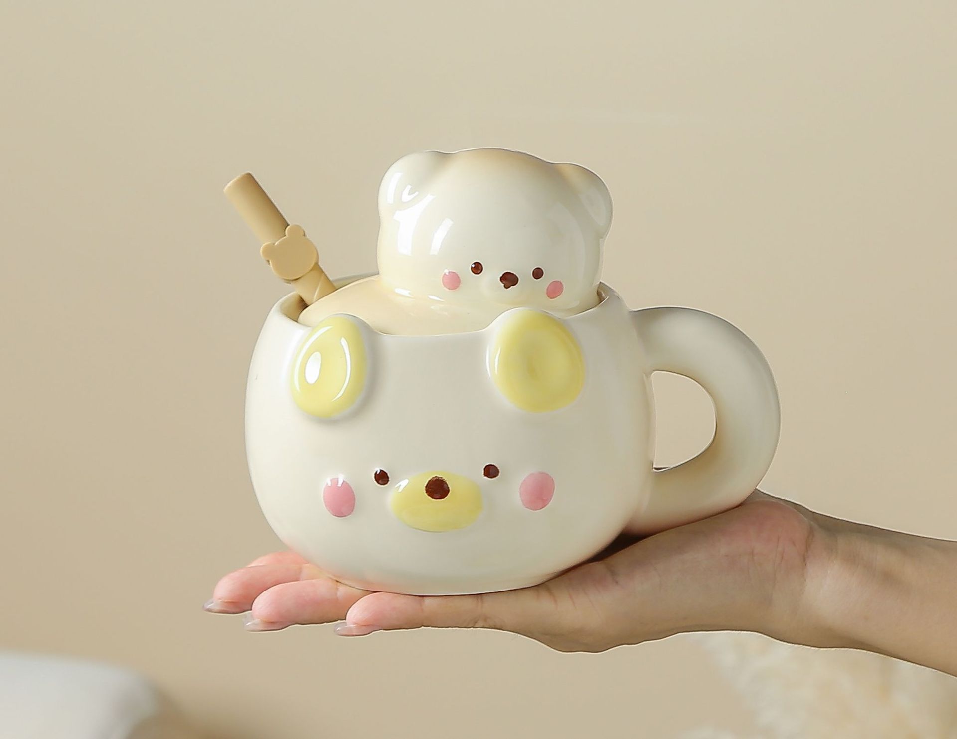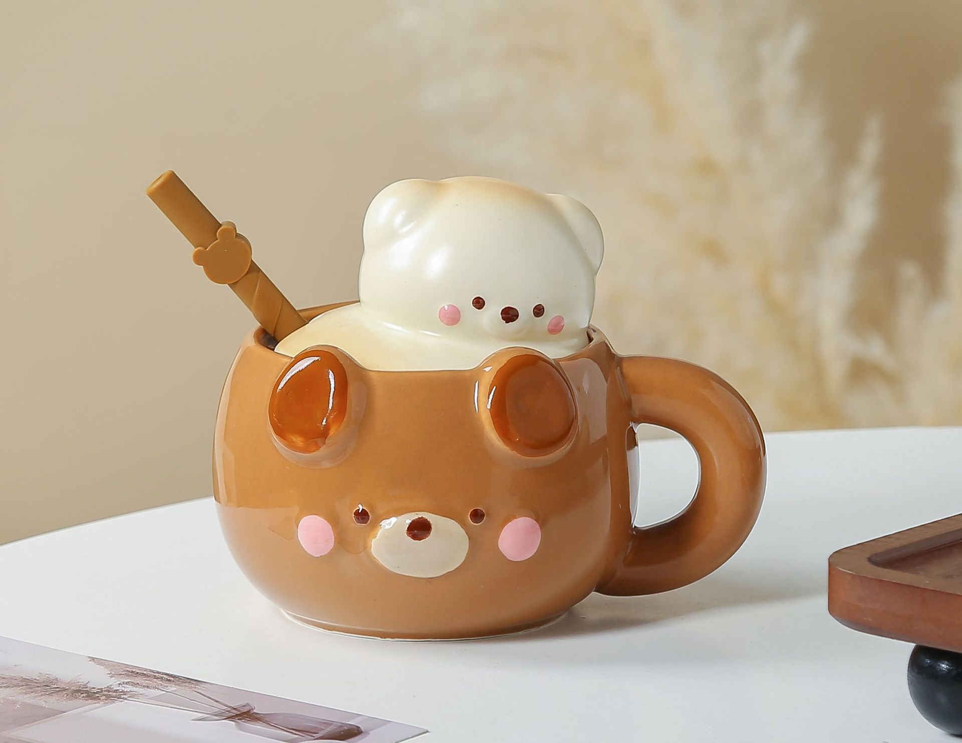 Product information: Applicable people: general Material: Ceramic Applicable holiday: New Year’s Day, Chinese Valentine’s Day, Halloween, Easter, National Day, Children’s Day, Women’s Day, others Style: Cute Capacity: 450ml Packing list: Cup+lid+straw * 1 Product Image: