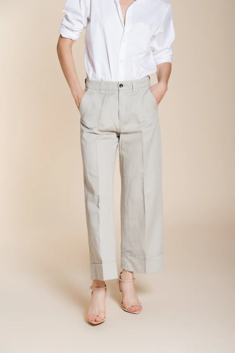 New York Studio Cropped pantalone chino donna in lino e cotone straight fit