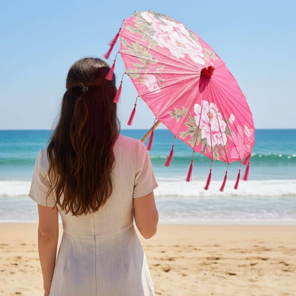Ombrelles Japonaises Papier Rose | Motifs Floraux & Soie