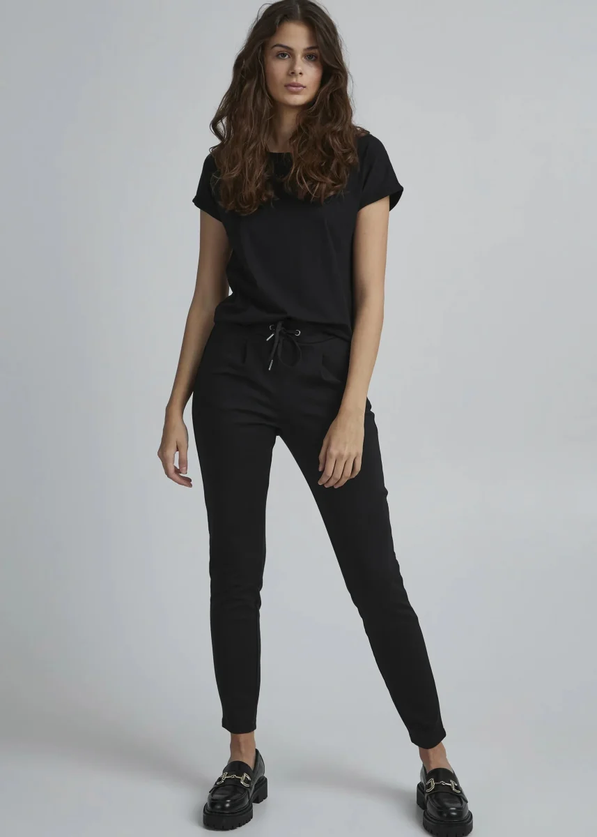 Le pantalon noir femme resserré en bas est une pièce essentielle du dressing, idéale pour un look à la fois tendance et confortable. Sa coupe ajustée aux chevilles apporte une silhouette moderne tout en restant agréable à porter au quotidien.