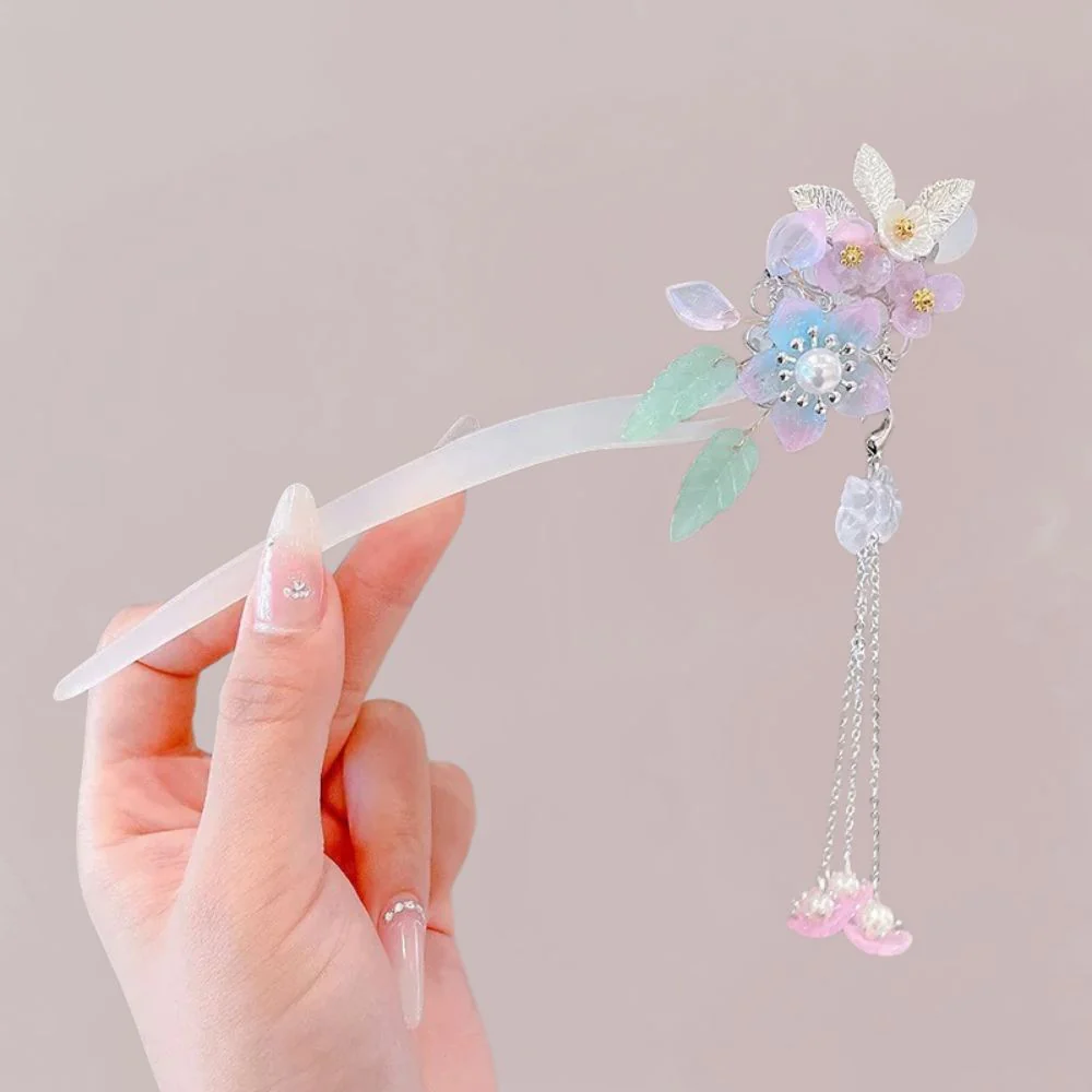 - Aspect visuel : Teintes douces et translucides mêlant blanc, rose, bleu et vert pastel, pour une ambiance aérienne et élégante digne d’une baguette japonaise pour cheveux.