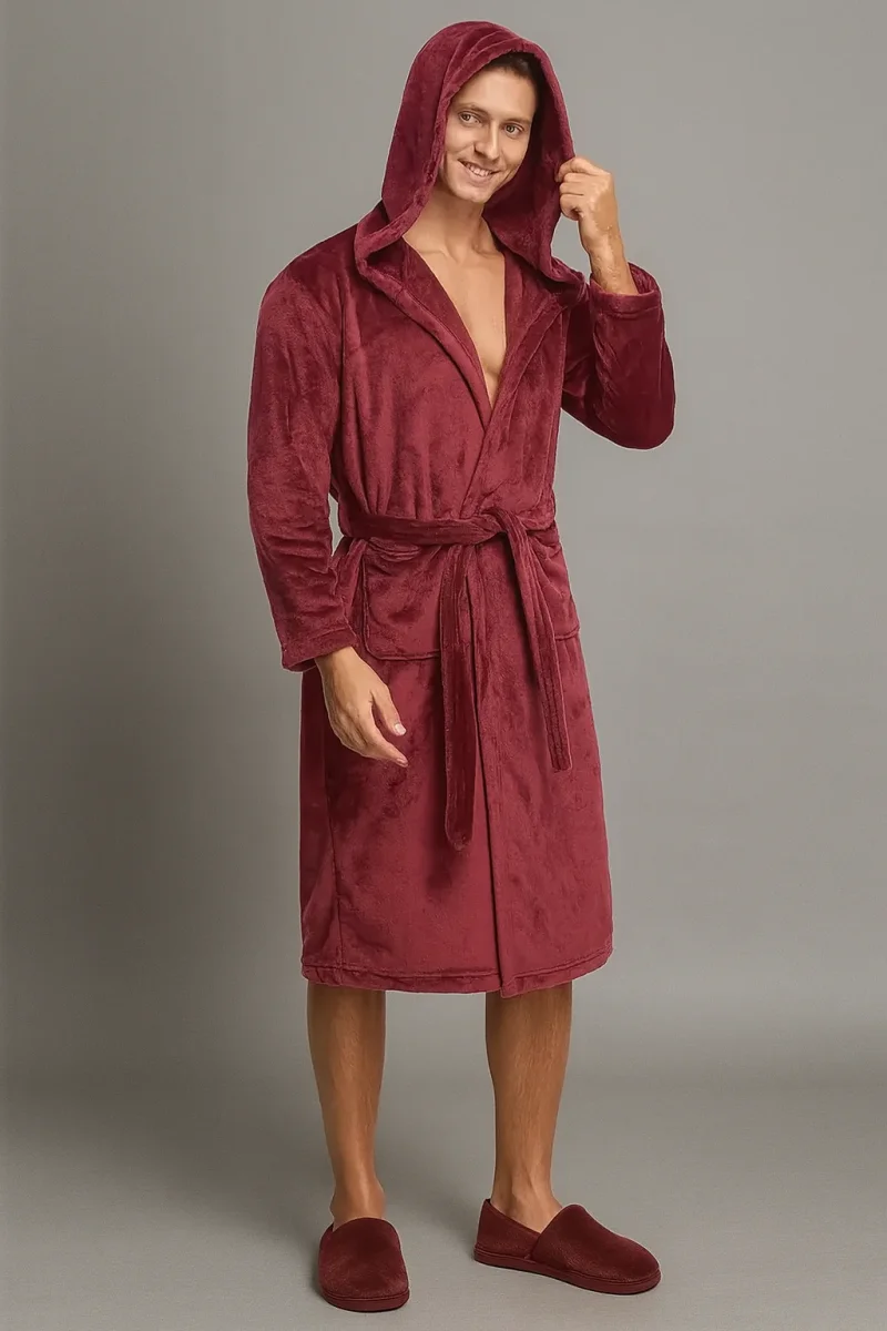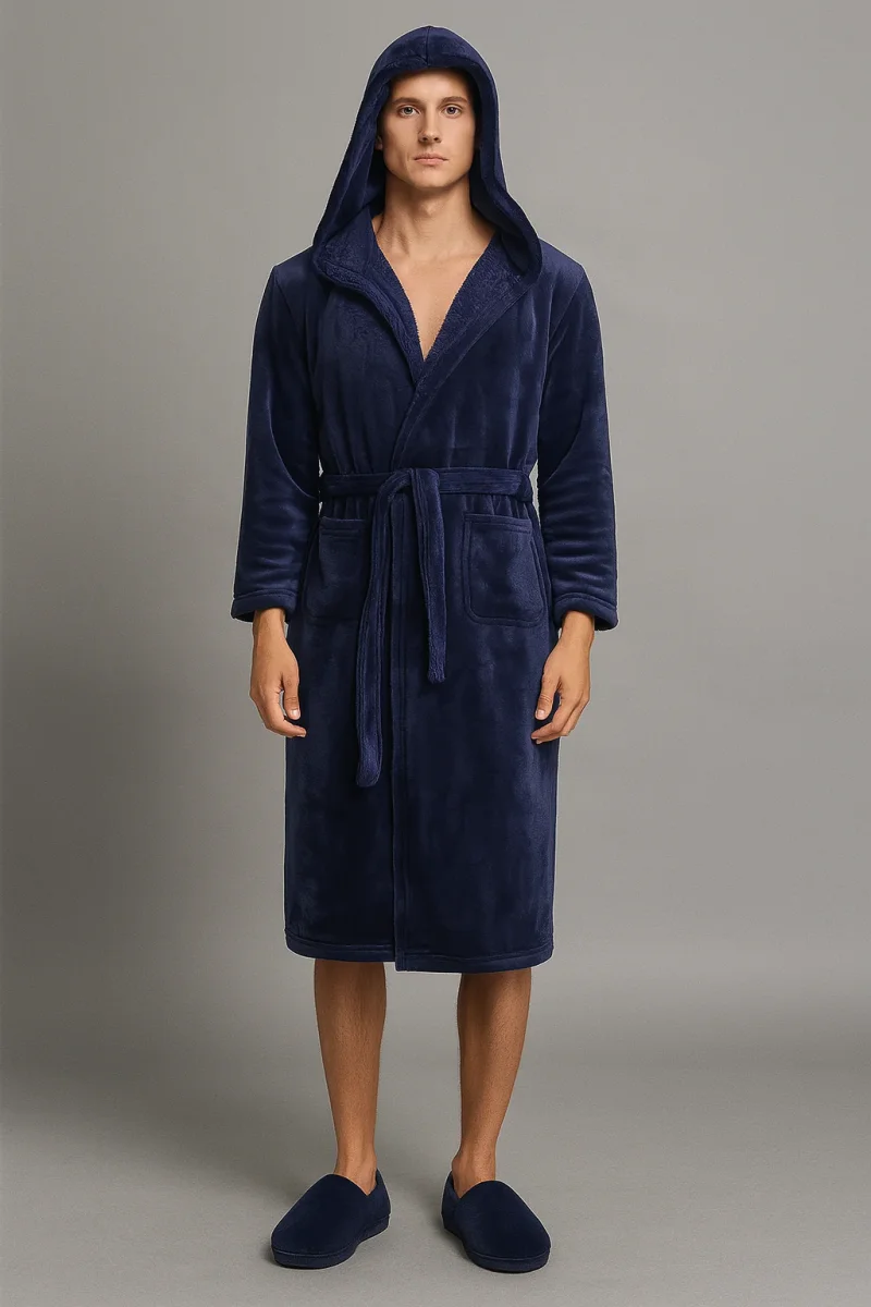 Laissez-vous envelopper par la chaleur douce et réconfortante de ce peignoir chaud à capuche en polaire. Conçu pour les hommes, ce peignoir long allie luxe et confort, parfait pour les moments de détente.