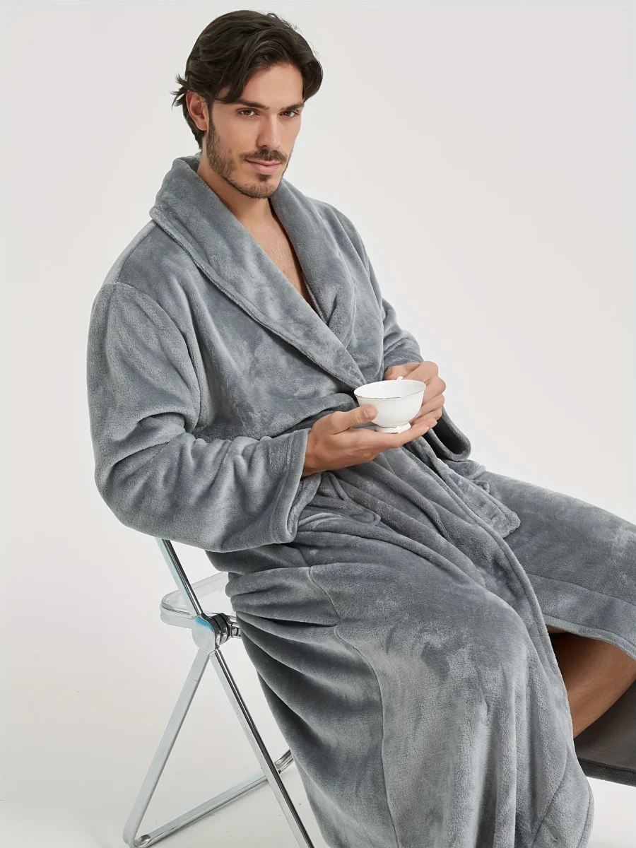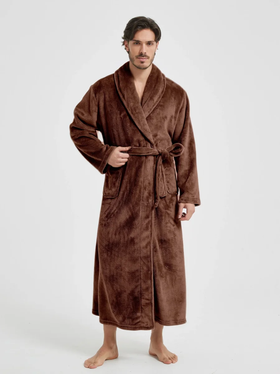 Peignoir homme polaire longue coupe avec col châle, ultra doux et léger. Parfait pour se détendre avec style au quotidien, disponible en plusieurs couleurs.
