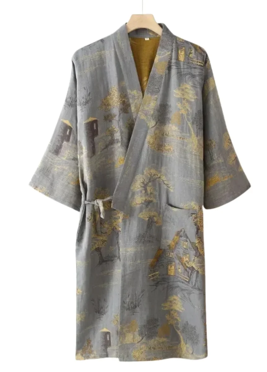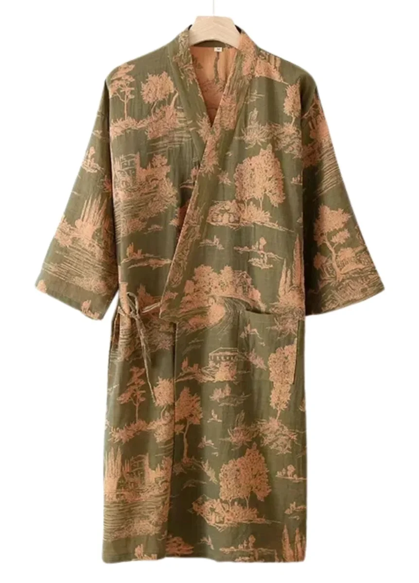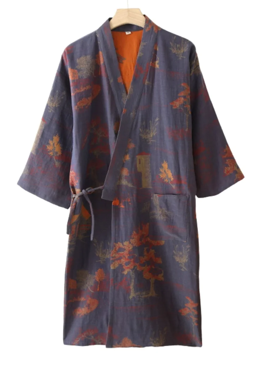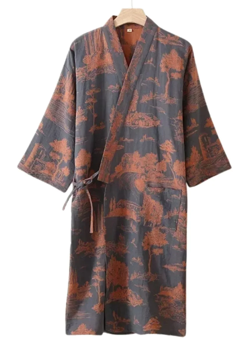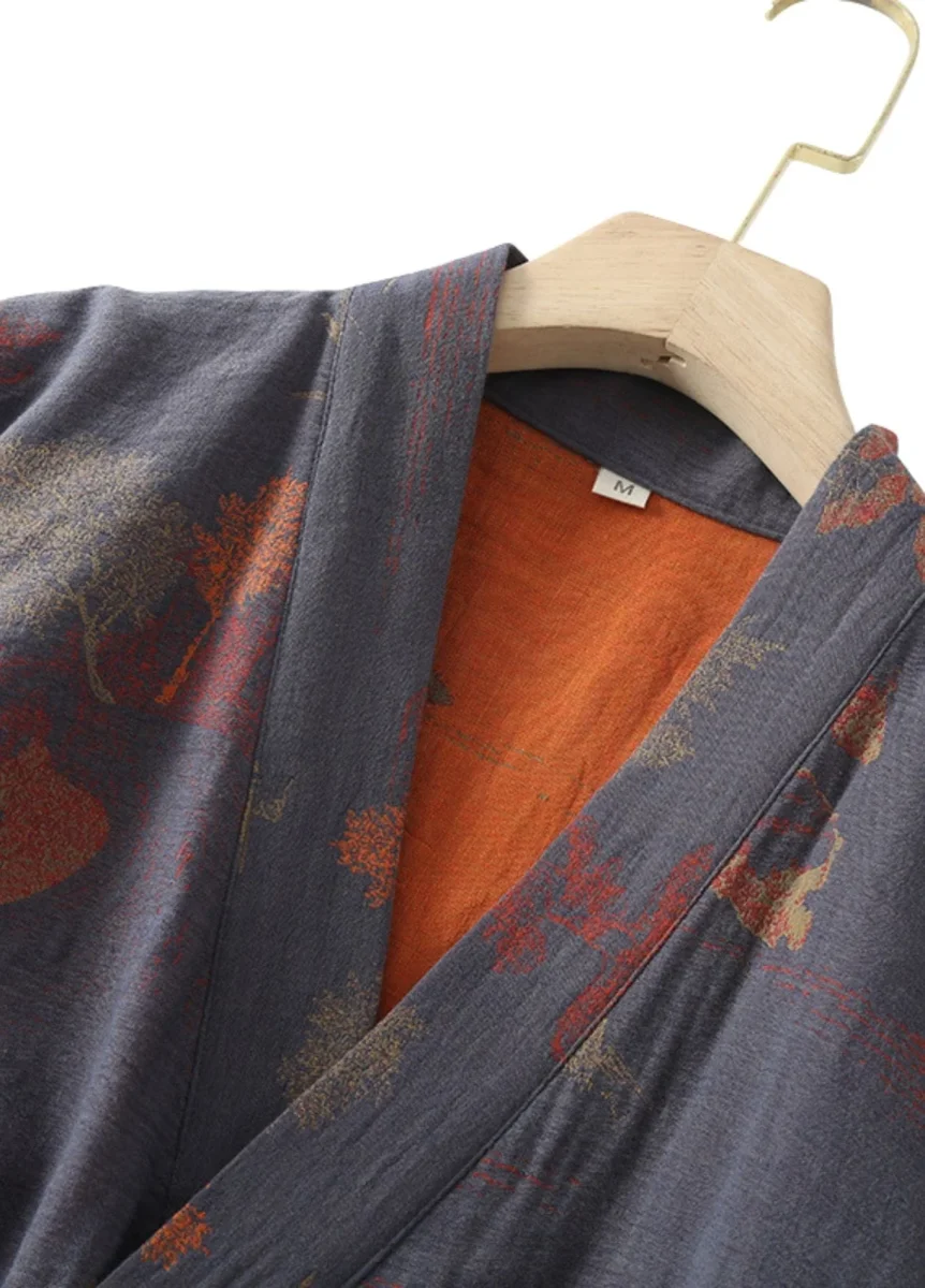 Ce peignoir kimono homme réunit confort et sophistication grâce à son tissu tissé de qualité et son imprimé inspiré des motifs traditionnels. Léger, doux et agréable à porter, il accompagne parfaitement les moments de détente, que ce soit le matin, le soir ou lors de journées de repos.