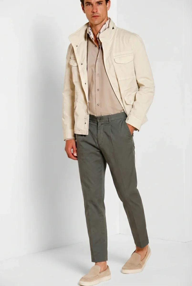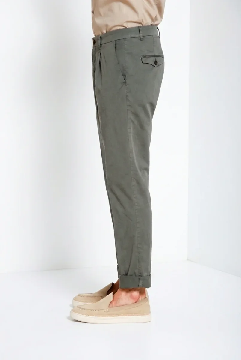 Pinces pantalone chino uomo in gabardina stretch relaxed fit