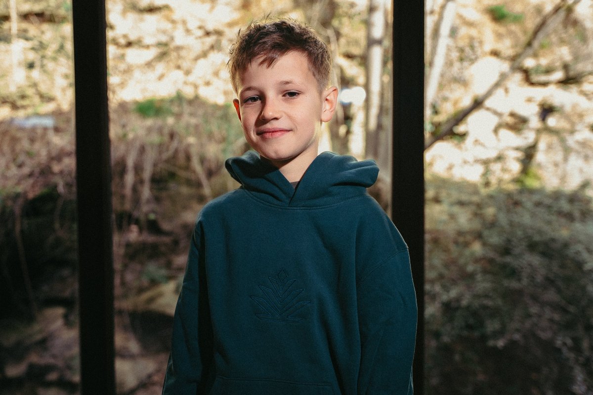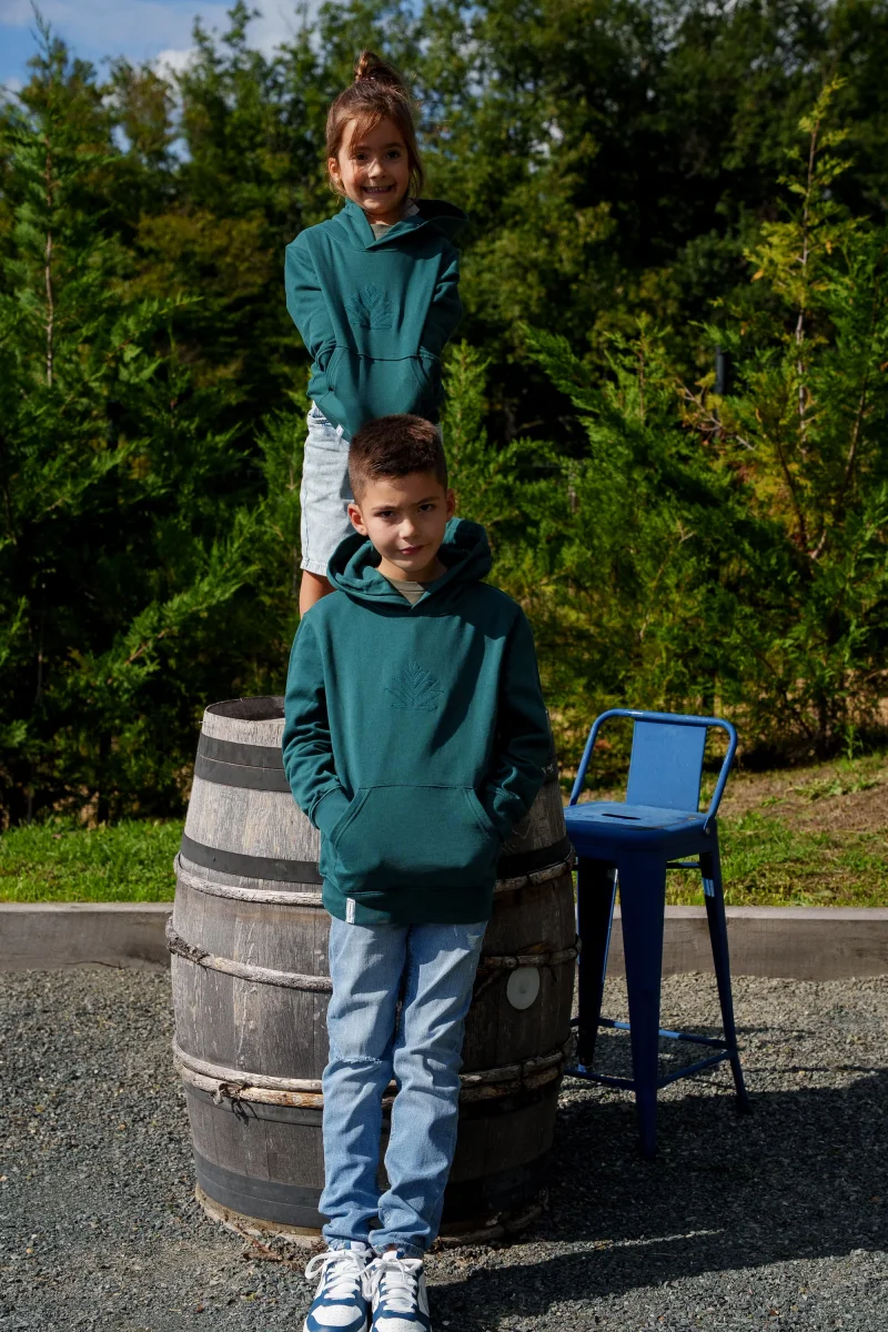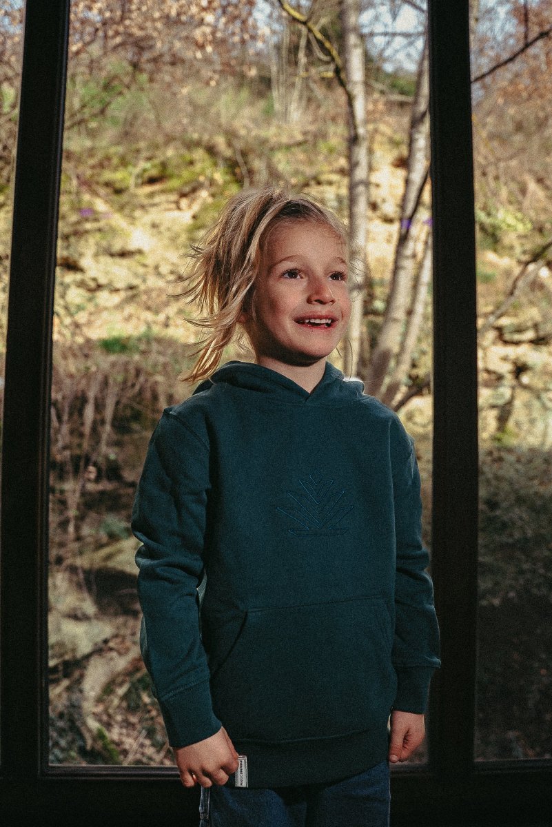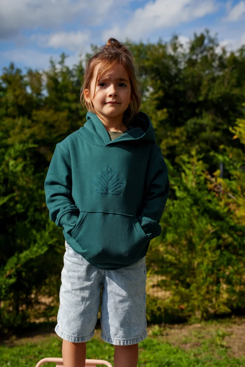 Fabriqué en 100 % coton biologique filé et peigné, ce sweat à capuche pour enfants offre une matière douce et chaude, pensée pour durer dans le temps et respecter la peau sensible des plus jeunes. Sa coupe medium fit assure une silhouette équilibrée, facile à porter avec un jean, un pantalon de sport ou même sous une veste.