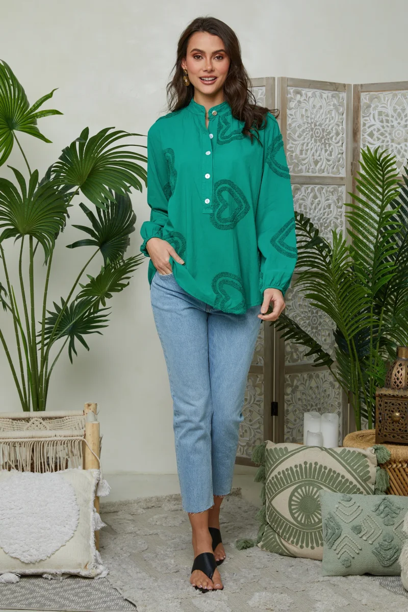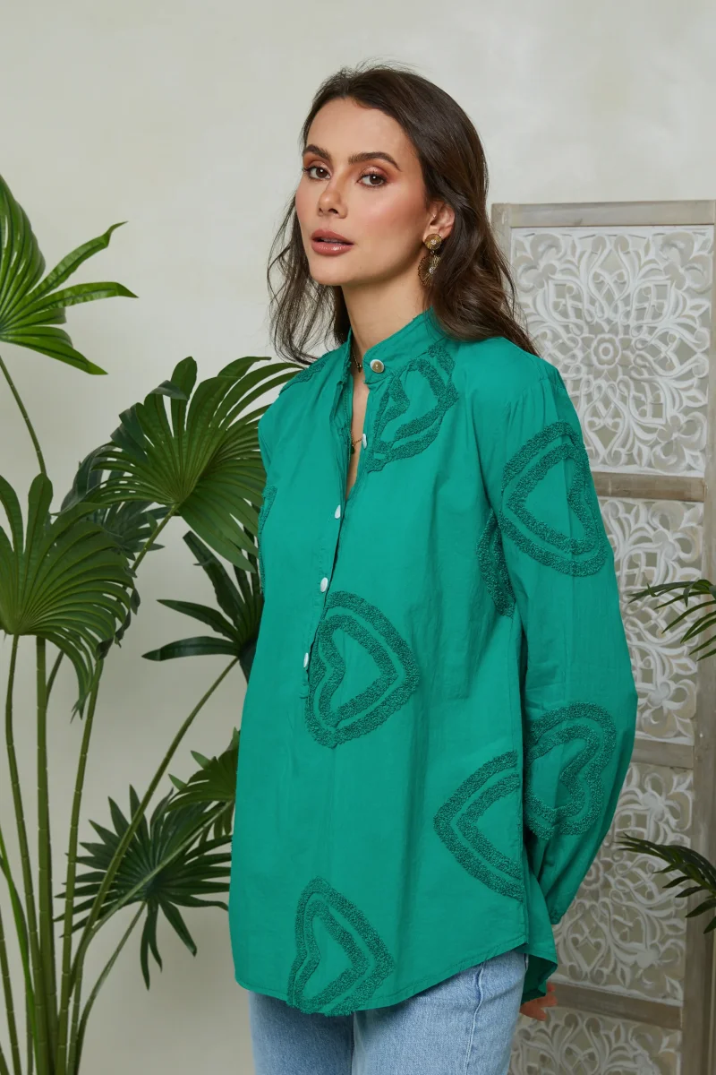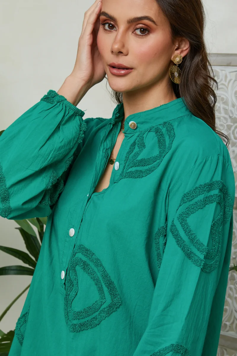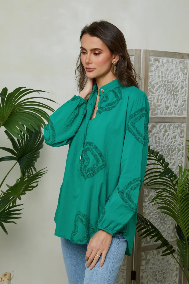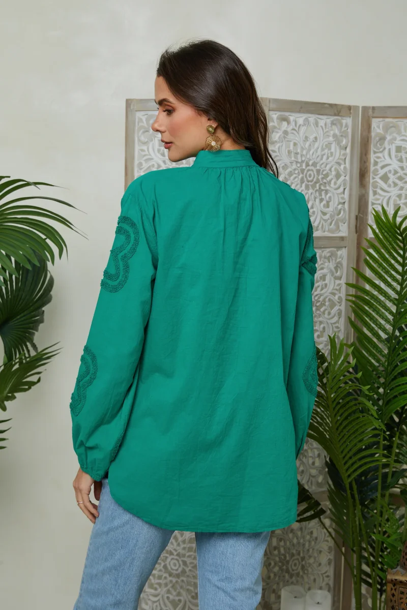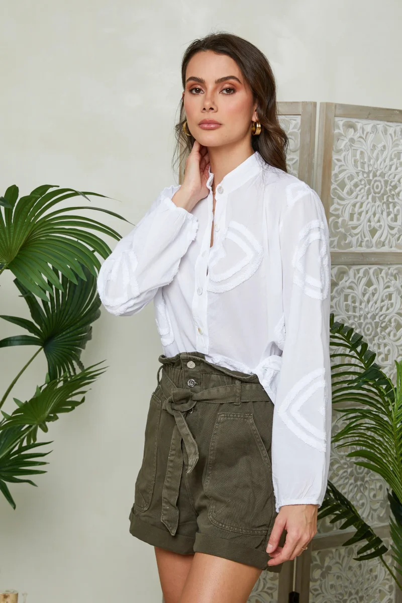Tunique col mao , avec des détails broderies, manches longues, serré au poignets 100% LIN Lavage en machine, en dessous de 30 ° C