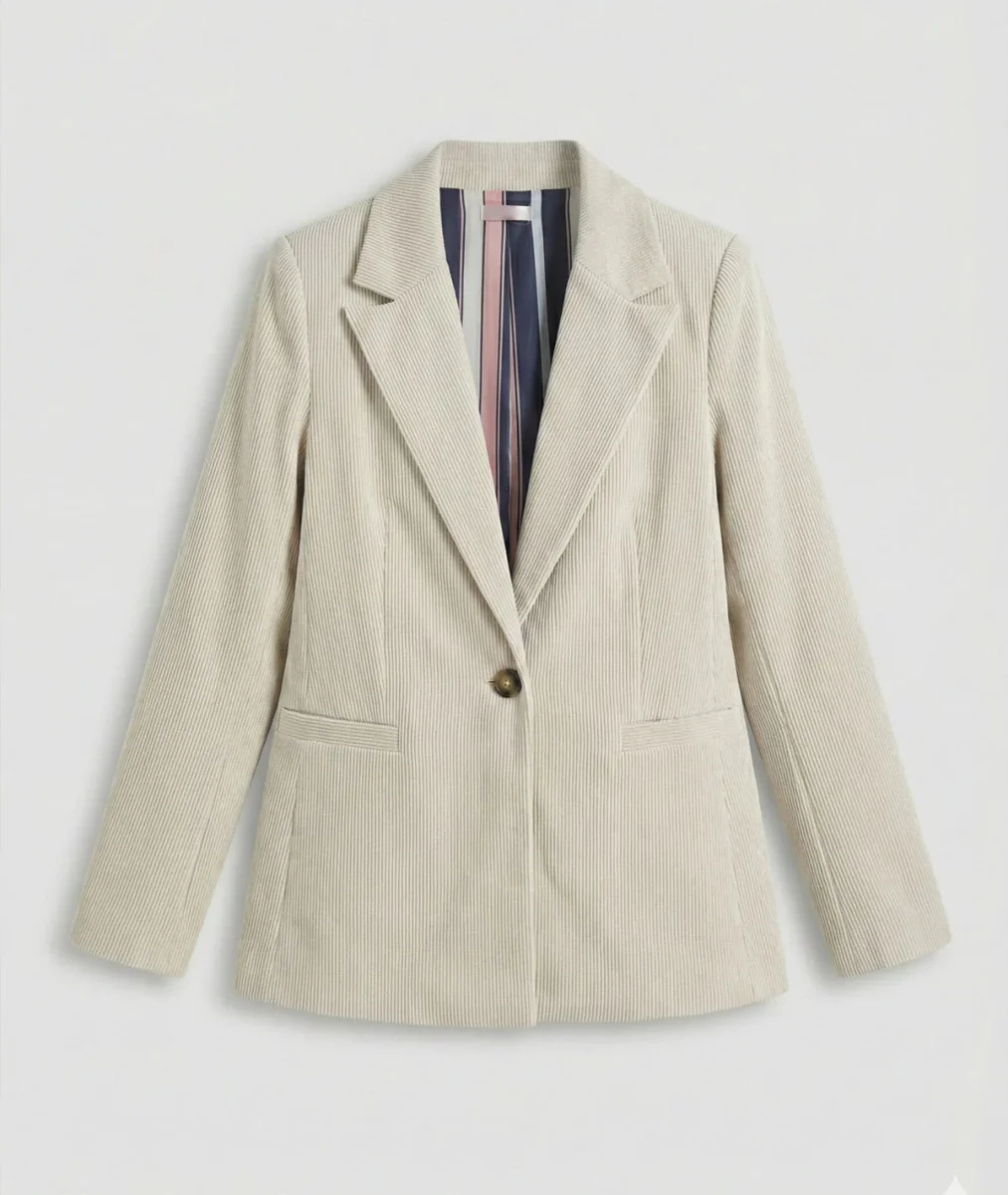 La veste blazer en velours côtelé écru Angélique apporte une dimension élégante et tendance au vestiaire Printemps / Été. Sa coupe structurée dessine une silhouette nette et assure un porté naturel, idéal pour accompagner aussi bien les tenues professionnelles que les looks du quotidien. Le velours côtelé, revisité dans une version lumineuse, apporte du relief au modèle tout en restant adapté à la saison. Son coloris écru illumine facilement une tenue et se combine avec de nombreuses palettes de couleurs.