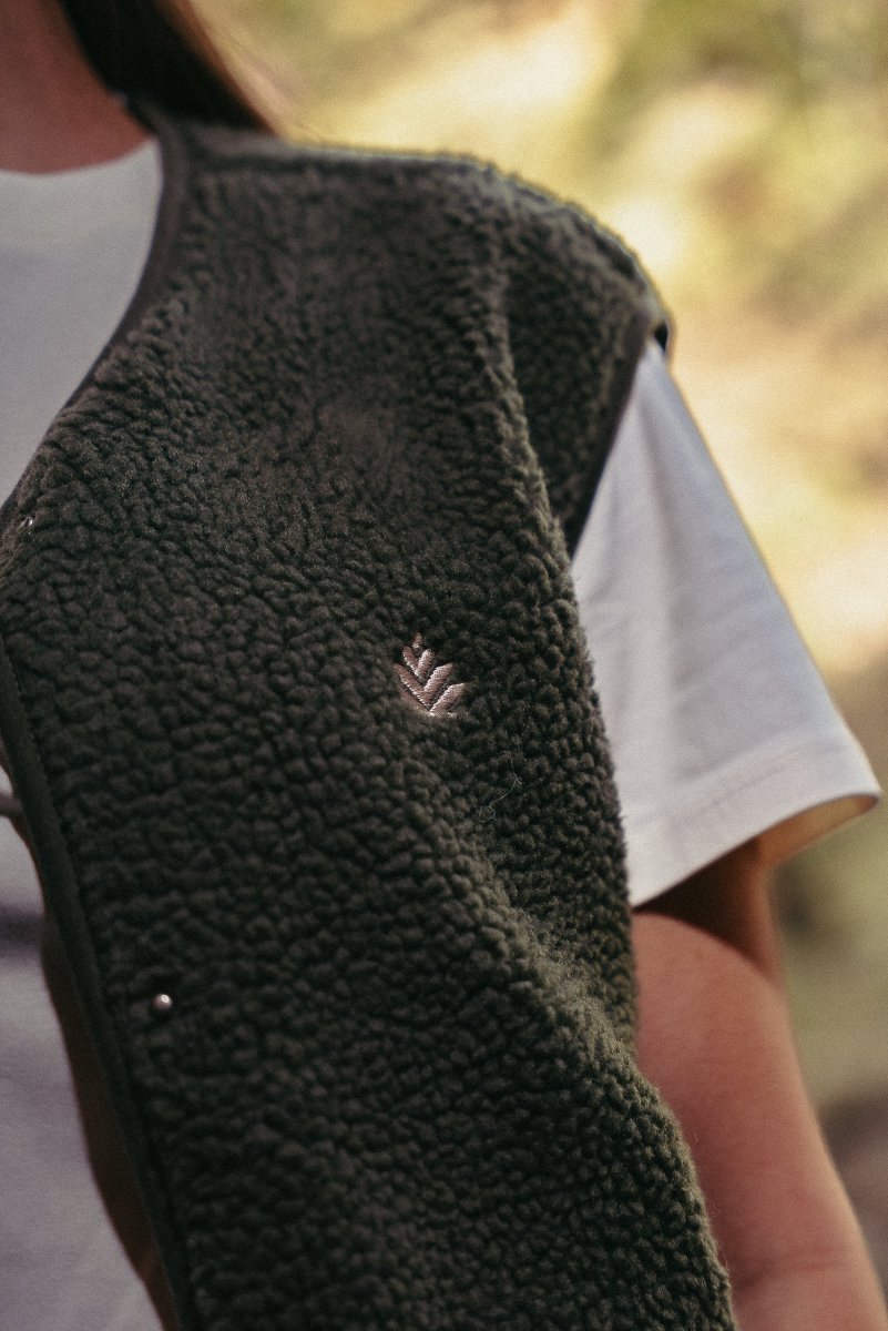 Confectionnée en mouton fin, elle réchauffe sans alourdir et se superpose facilement sur une maille ou une chemise. Ses boutons pression apportent une finition pratique et épurée.