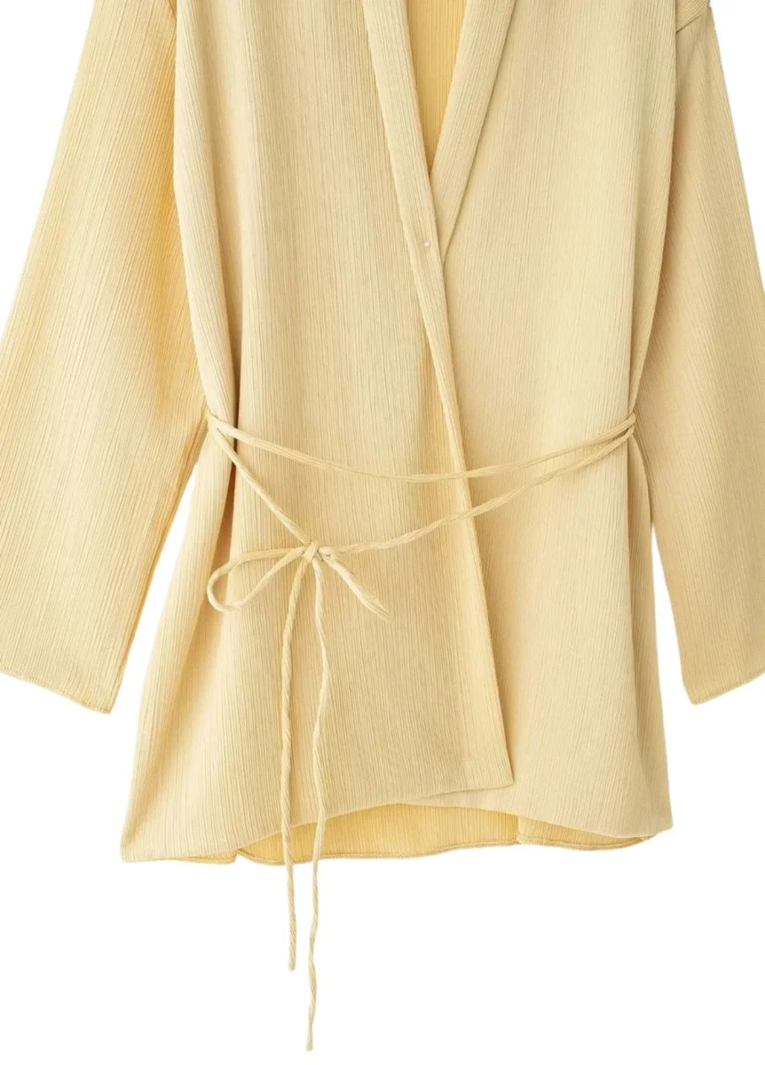 Cette veste kimono femme chic se distingue par sa ligne longue et épurée, pensée pour accompagner les mouvements avec naturel et légèreté. Sa coupe fluide met en valeur la silhouette tout en conservant une allure maîtrisée et contemporaine. Idéale pour compléter une tenue avec subtilité, elle s’intègre facilement dans un vestiaire soigné et polyvalent.