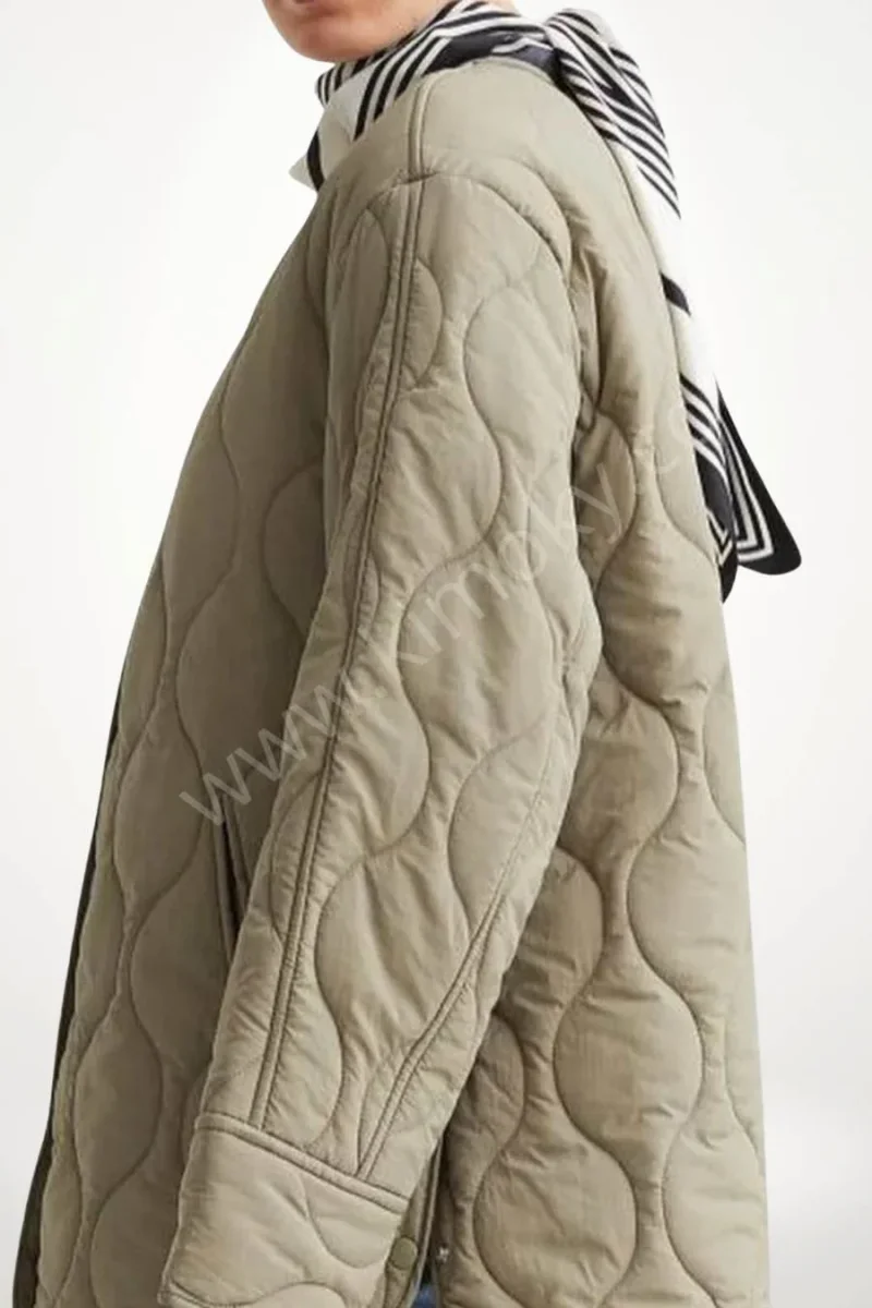 - Style : Le matelassage en motifs ondulés crée un effet visuel délicat, tandis que la coupe droite et le col rond apportent une touche moderne et féminine.