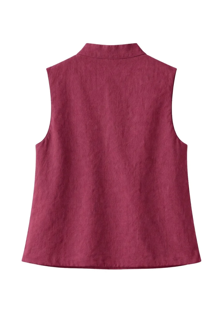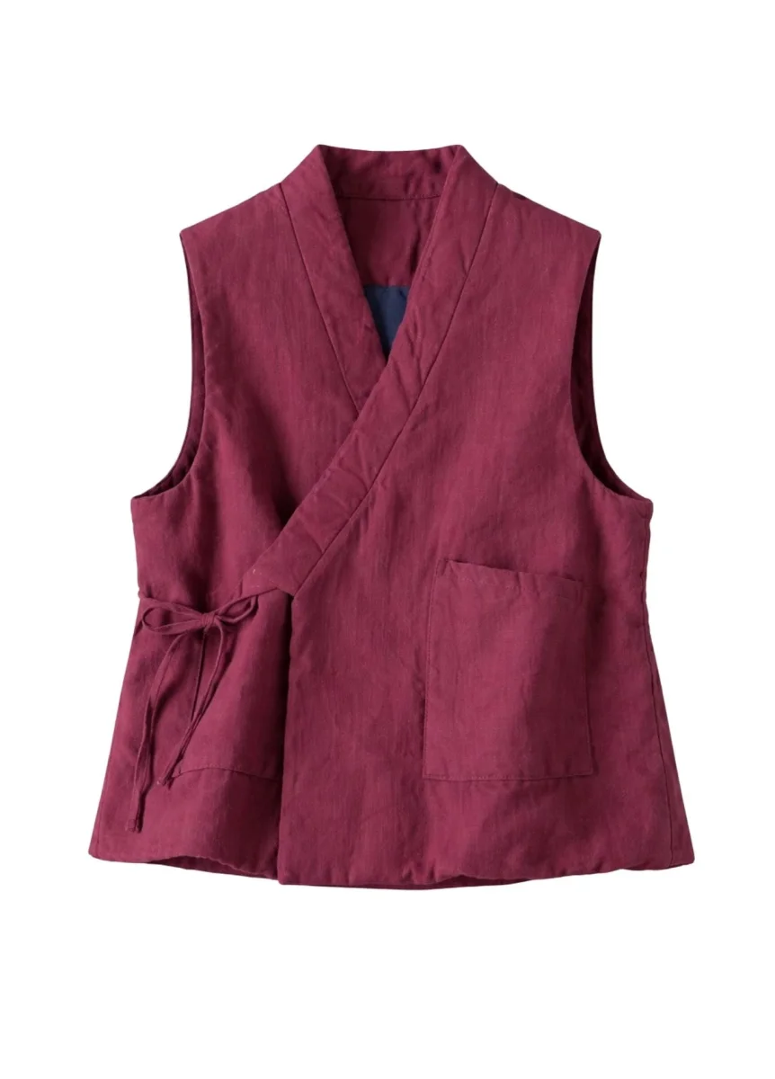 L’absence de manches apporte une sensation de fluidité et met en valeur la ligne des épaules, tout en offrant un porté agréable et équilibré. La ceinture permet d’ajuster la veste selon vos envies, créant une silhouette harmonieuse. Le col en V souligne délicatement le buste, tandis que l’ouverture complète assure une utilisation pratique et intuitive.