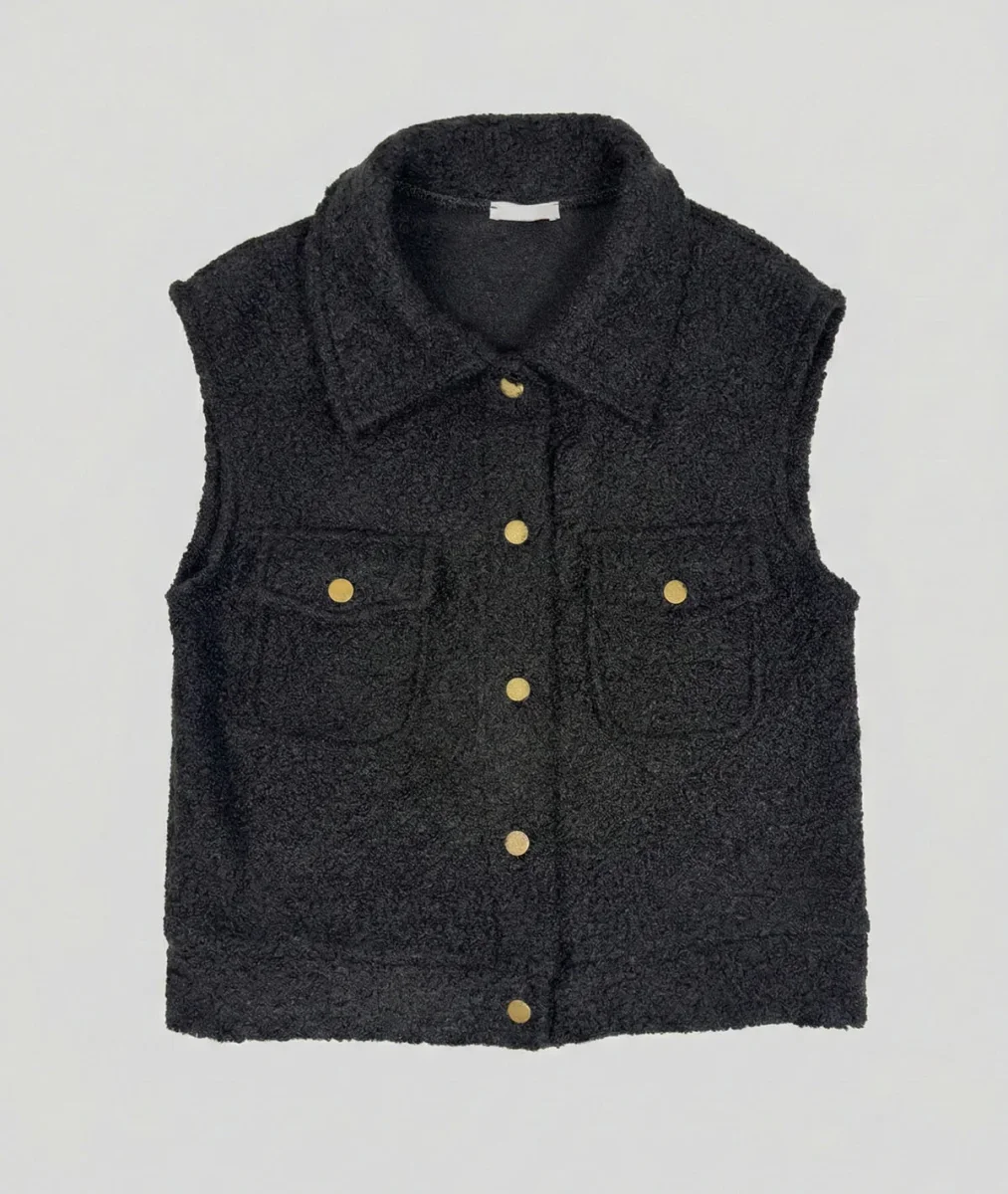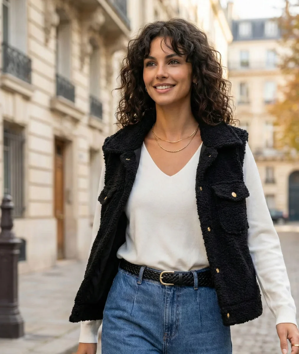 La veste sans manches bouclette femme Carnaby s’impose comme une pièce forte du vestiaire féminin. Inspirée de l’esprit surchemise, elle revisite la veste sans manches avec une approche résolument moderne et élégante.