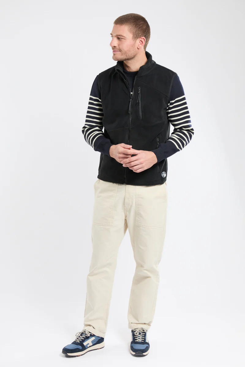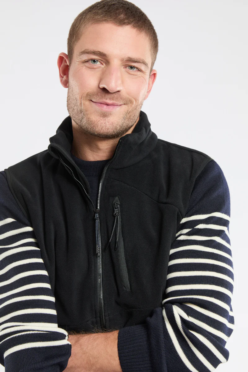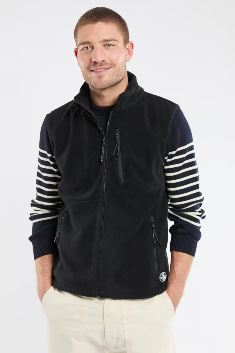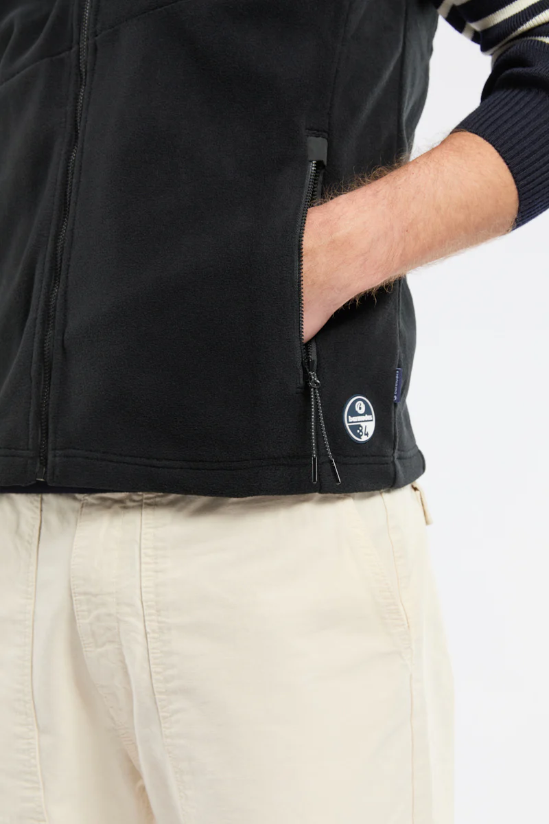 Cette veste polaire vous tiendra chaud cet automne! Veste polaire sans manches Ouverture frontale zippée 2 poches basses zippées Une poche poitrine zippée Longueur pour une taille L: 70cm Matière: 100% polyester Le mannequin mesure 1m89 et porte l’article en taille 42.