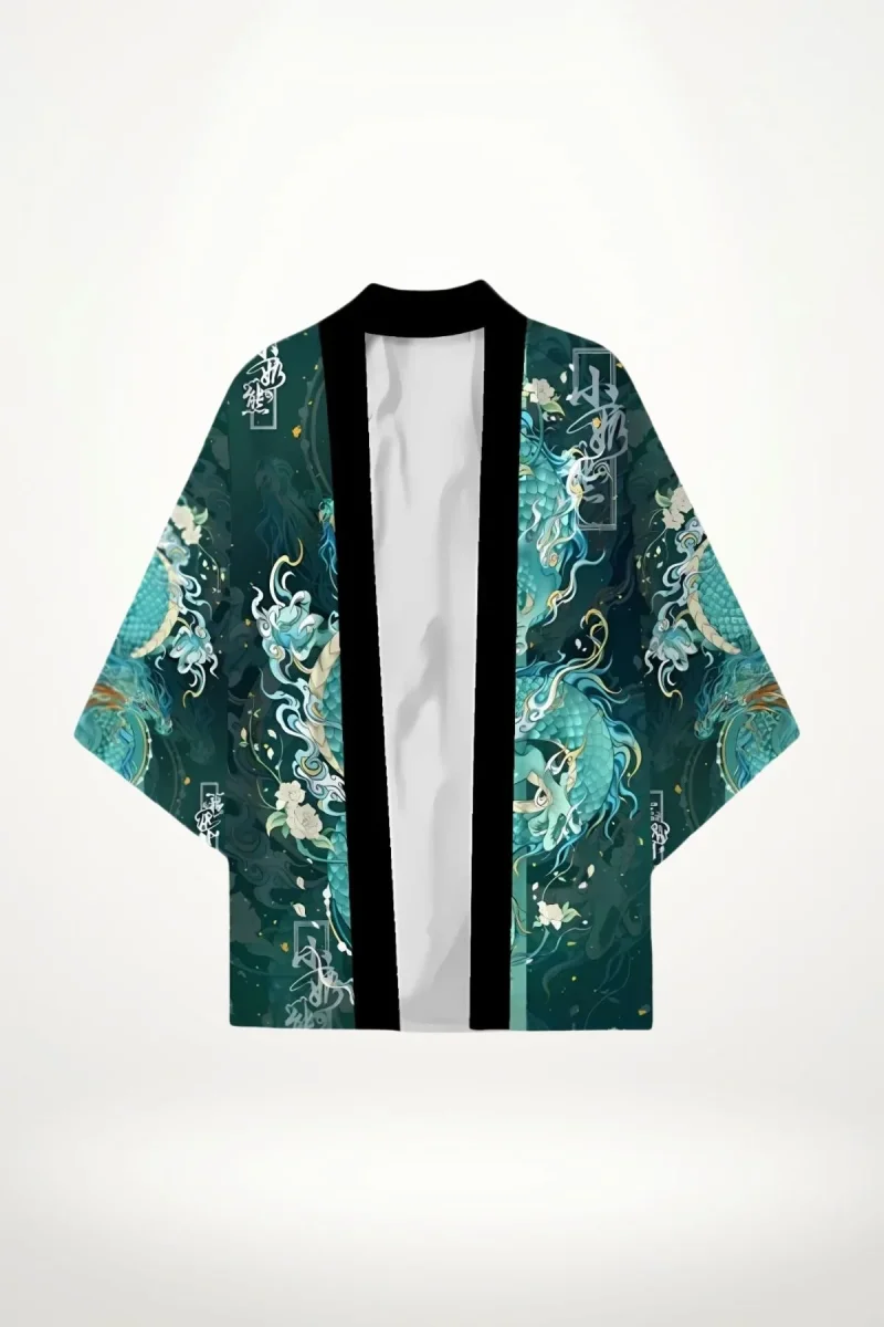 - Émotion : L’allure de ce kimono homme veste impose une présence forte, entre mystère et élégance, portée par le motif emblématique du dragon, symbole de force et de sagesse.