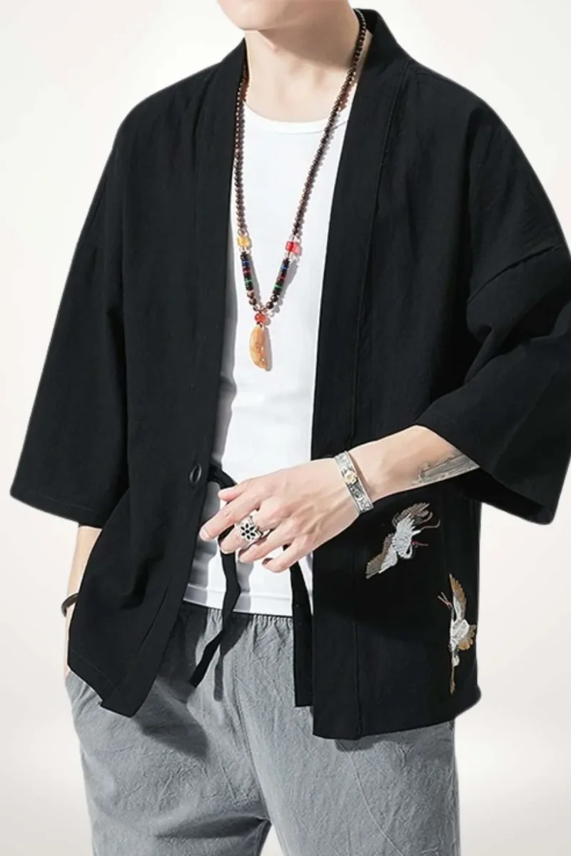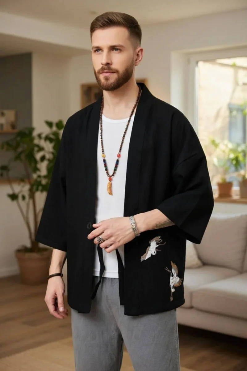 Un kimono jacket homme noir aux accents japonais subtils